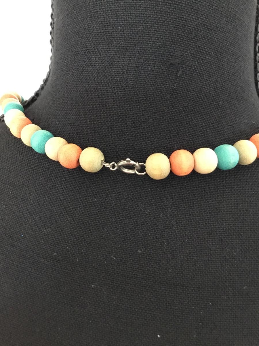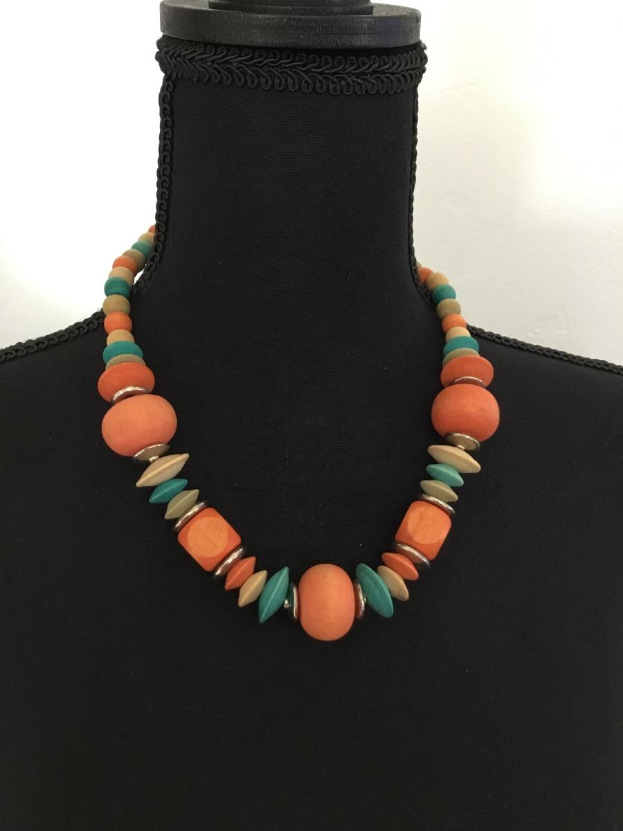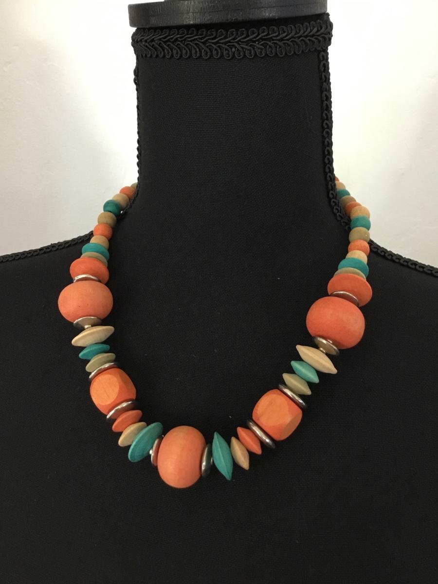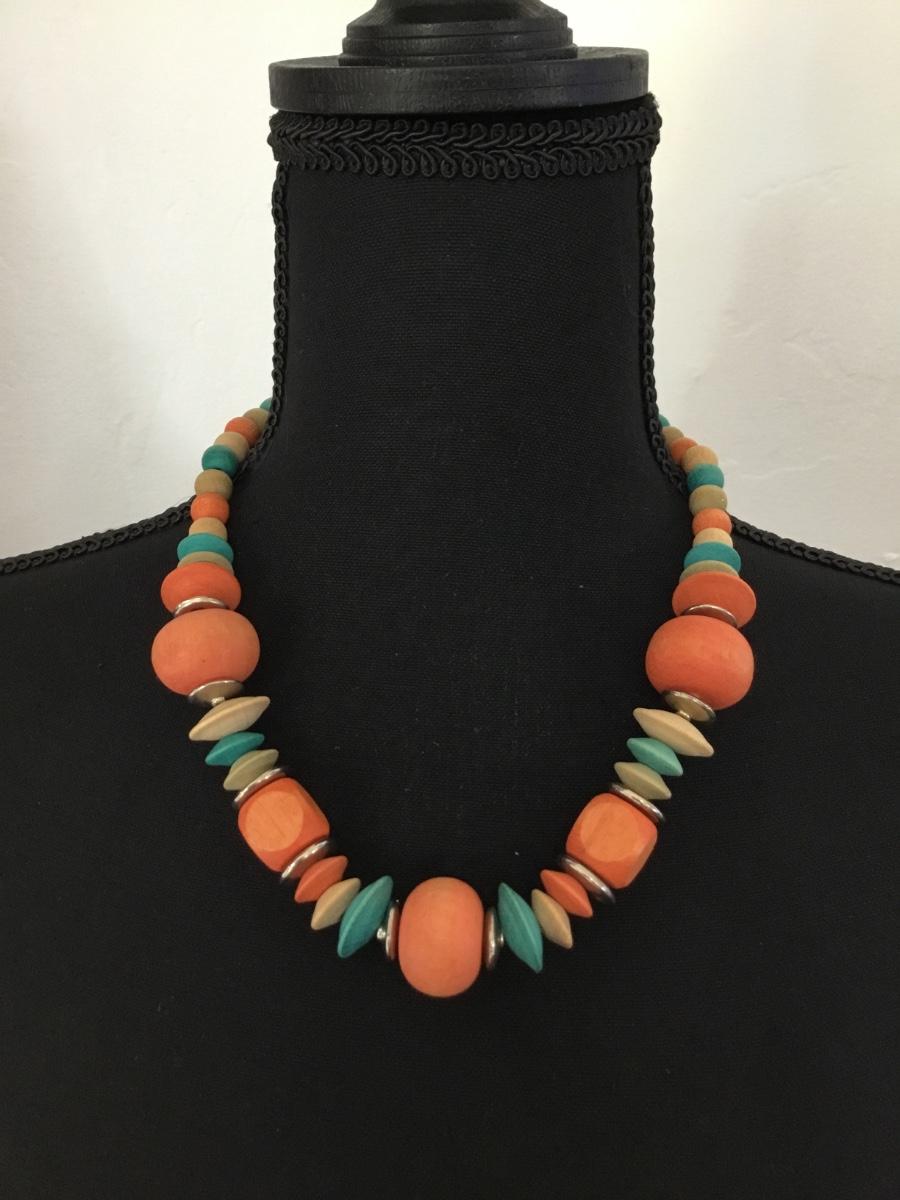 Vintage wooden orange and blues beaded necklace