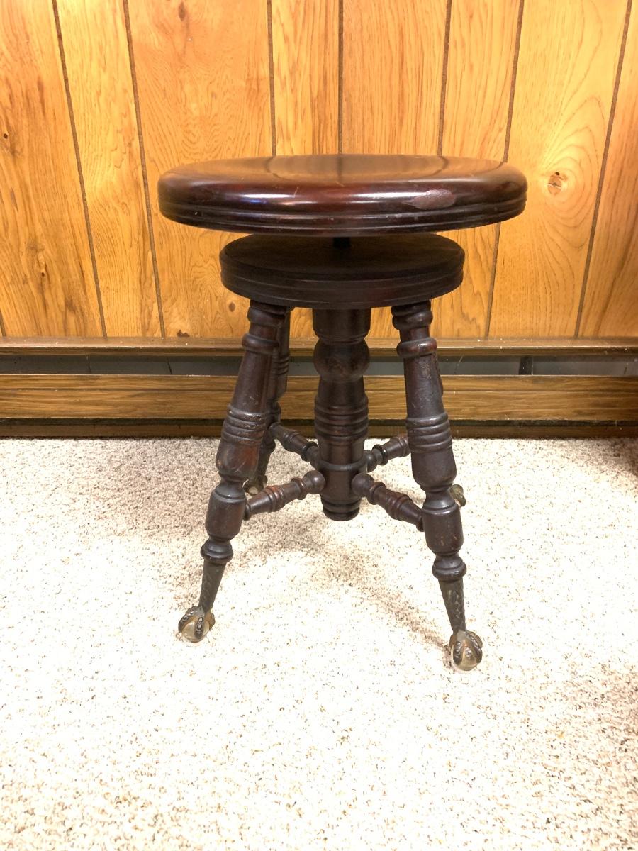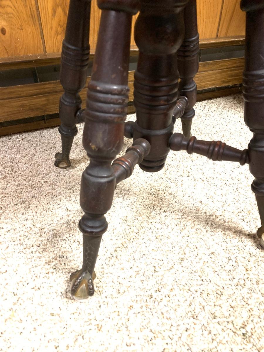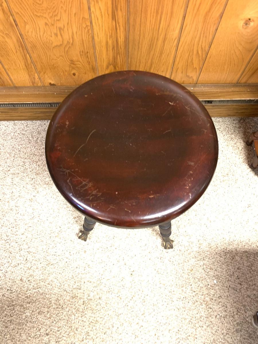 Adjustable piano stool, solid. Glass claw foot in excellent condition