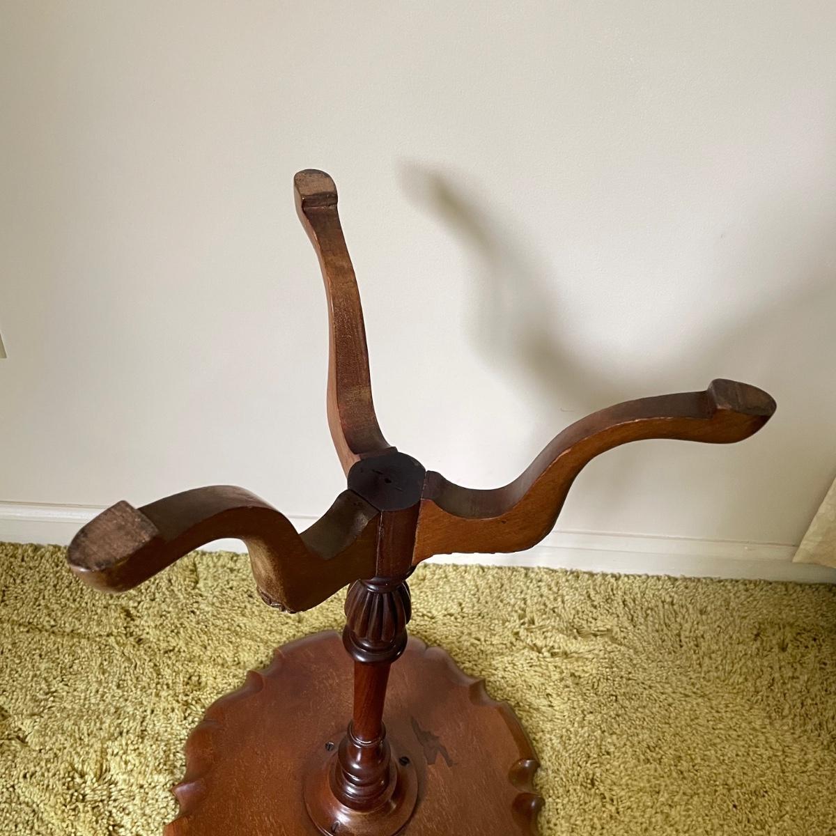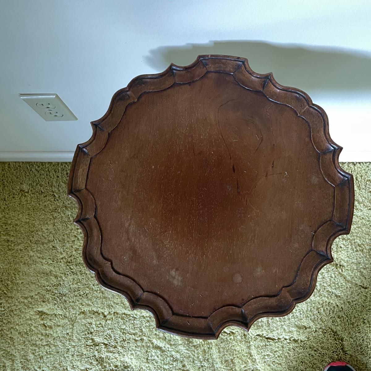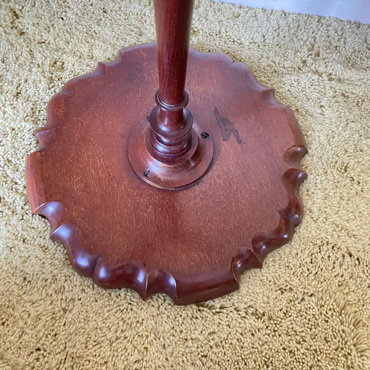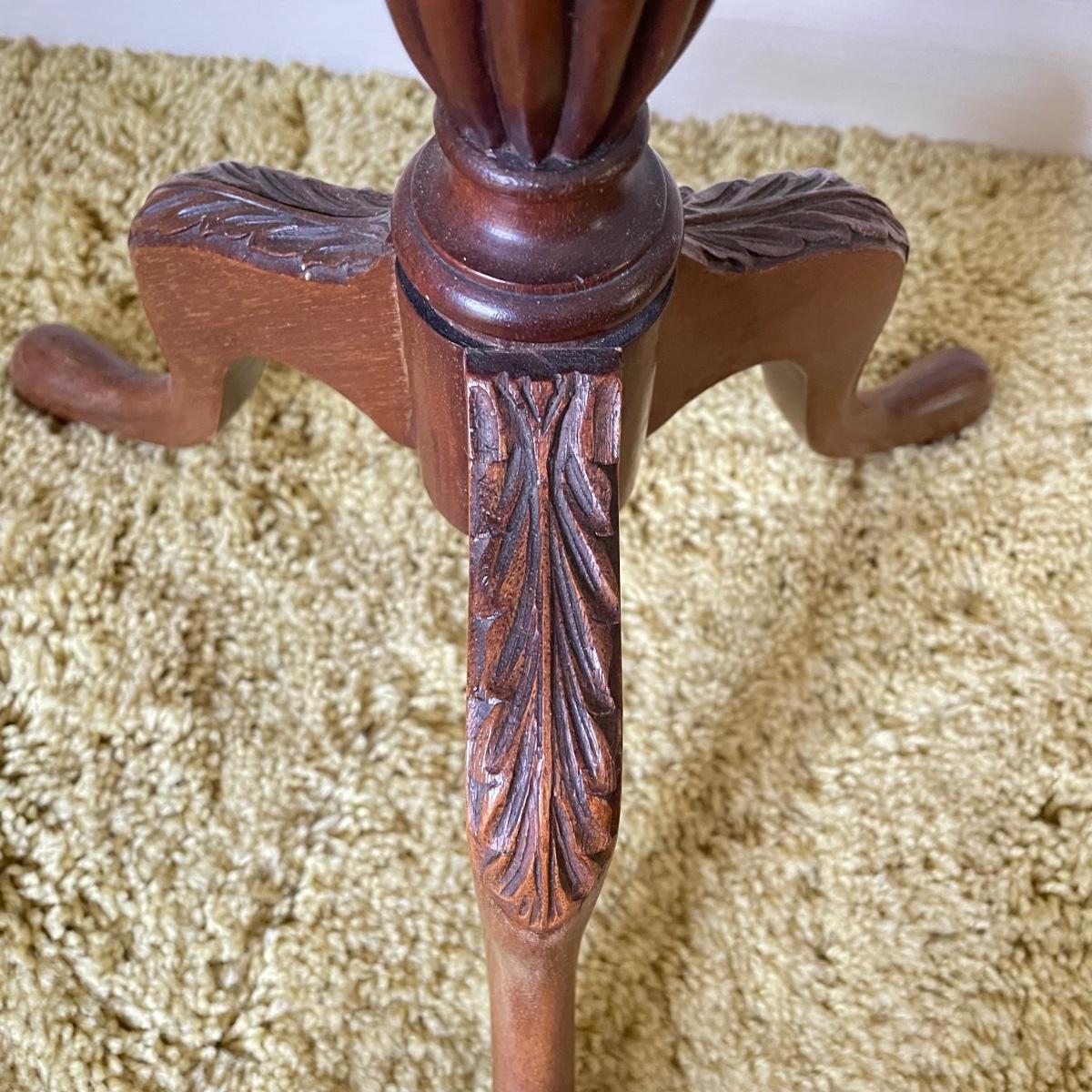 Pretty wooden antique side table that could also be a plant stand appears to be very sturdy. Piece measures 13.75”d x 21.5”, it’s in great shape with some minor water spots on the top. See images. Local pick up only.