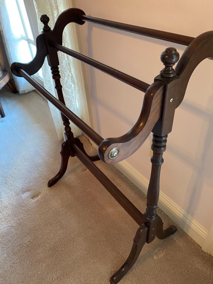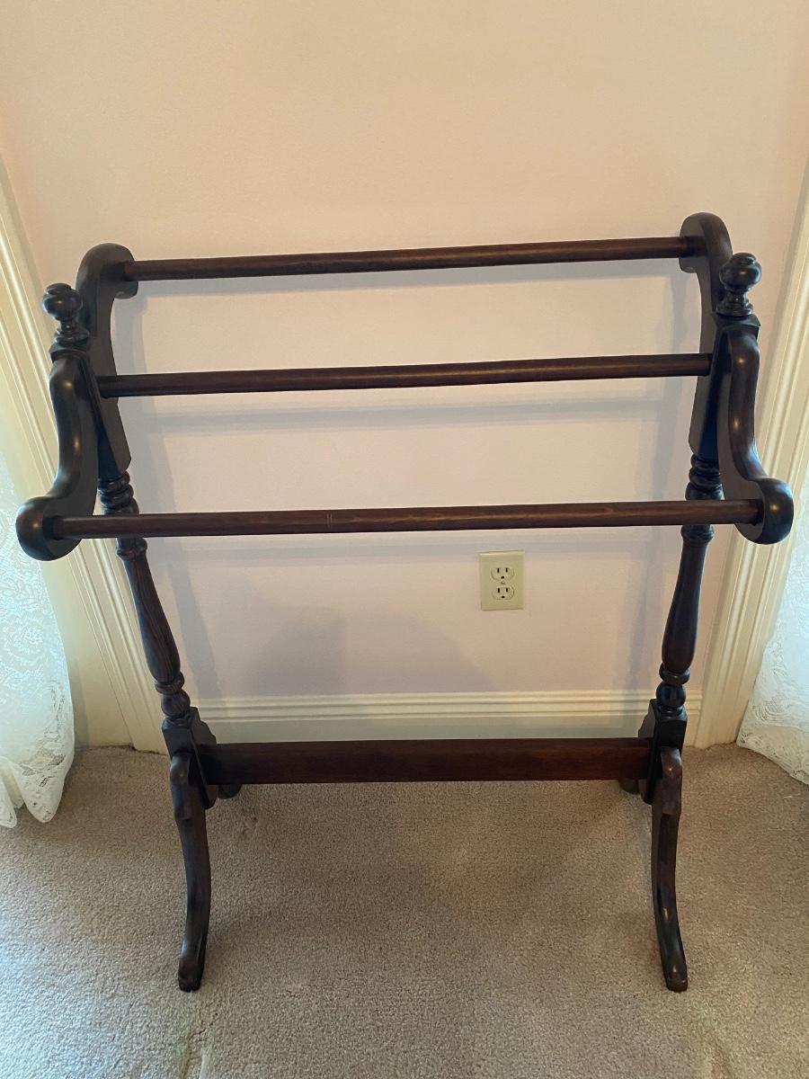 Vintage wooden quilt rack. Approx 31h x 14d x 27w