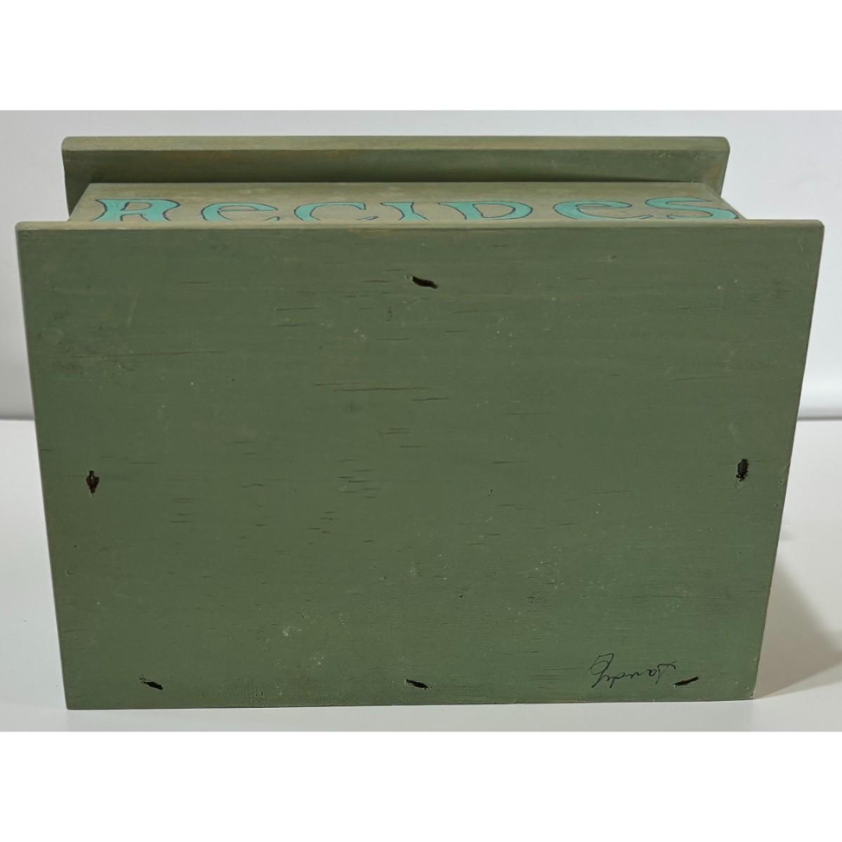 You get one recipe box that is in good condition with minor surface wear. It stands approximately 6.5" tall at its tallest, is roughly 7" wide, and 4 5/8" deep. Please see all pictures. Thank you for looking. As a reminder, if this is a lot, we do not break up lots. Also, all items are prepacked, so each item is sent individually. Any item that qualifies for media mail and weighs over one pound will be shipped via media mail. Otherwise, the item will be shipped USPS ground advantage, or UPS ground. Shipping for this item is $10.00. Items ship within two days after payment is received. Item SKU is OTH3105.
