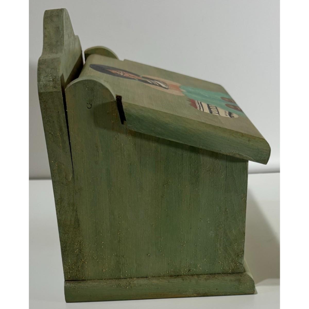 Vintage Wooden Recipe Box Native American Woman Pottery Turquoise Green Wood