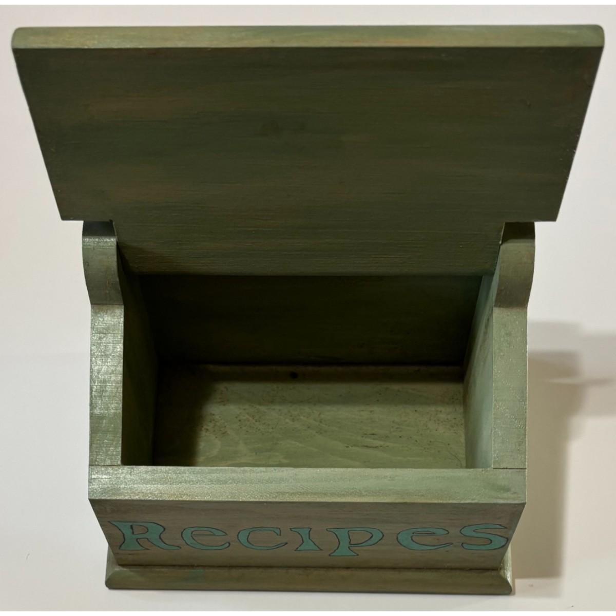 You get one recipe box that is in good condition with minor surface wear. It stands approximately 6.5" tall at its tallest, is roughly 7" wide, and 4 5/8" deep. Please see all pictures. Thank you for looking. As a reminder, if this is a lot, we do not break up lots. Also, all items are prepacked, so each item is sent individually. Any item that qualifies for media mail and weighs over one pound will be shipped via media mail. Otherwise, the item will be shipped USPS ground advantage, or UPS ground. Shipping for this item is $10.00. Items ship within two days after payment is received. Item SKU is OTH3105.