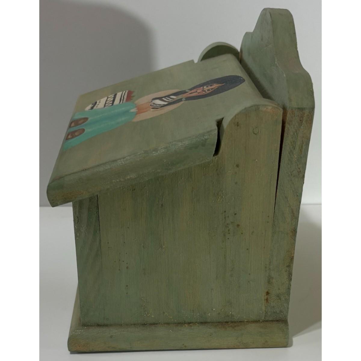 Vintage Wooden Recipe Box Native American Woman Pottery Turquoise Green Wood