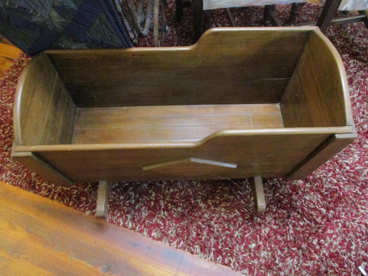 Vintage Hand-Crafted Wooden Rocking Baby Cradle - F