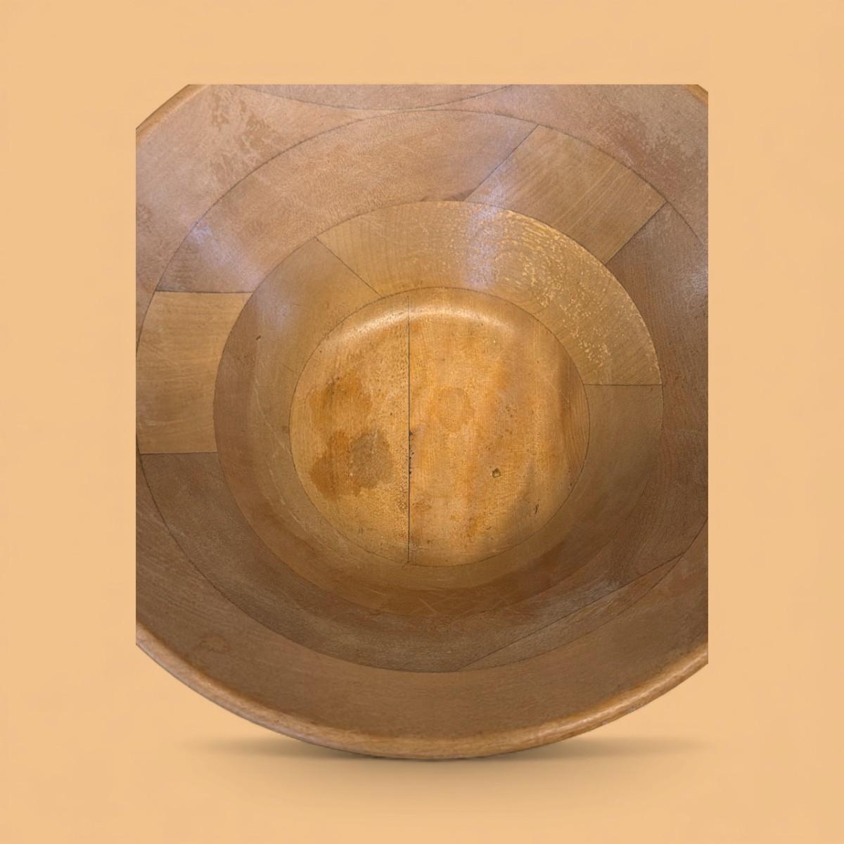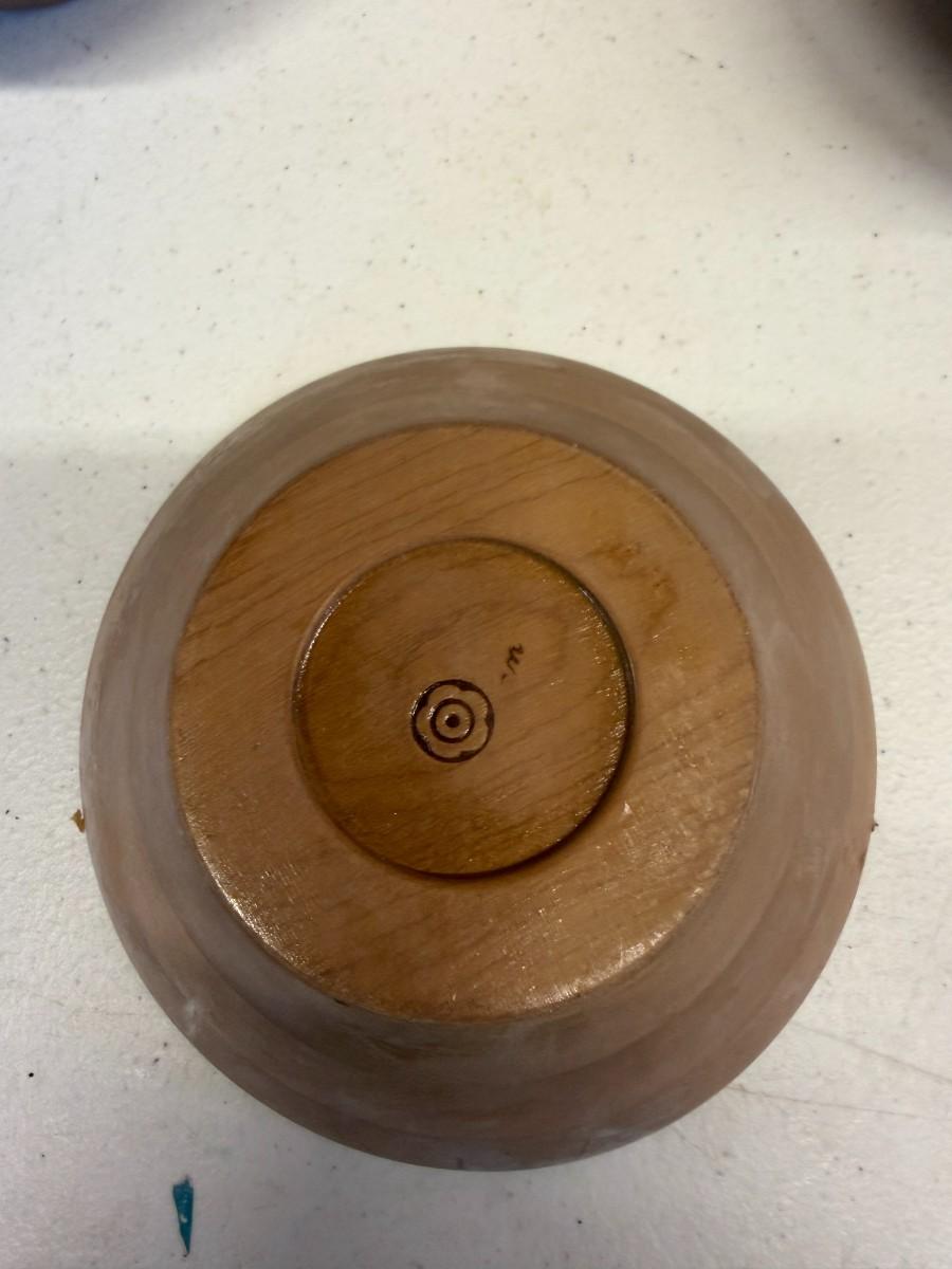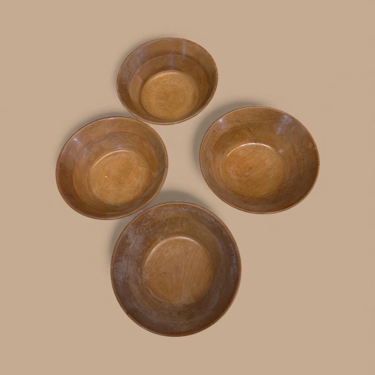 Vintage Wooden Salad Bowl and 4 Single Serve Bowls. Small split in large bowl see photo