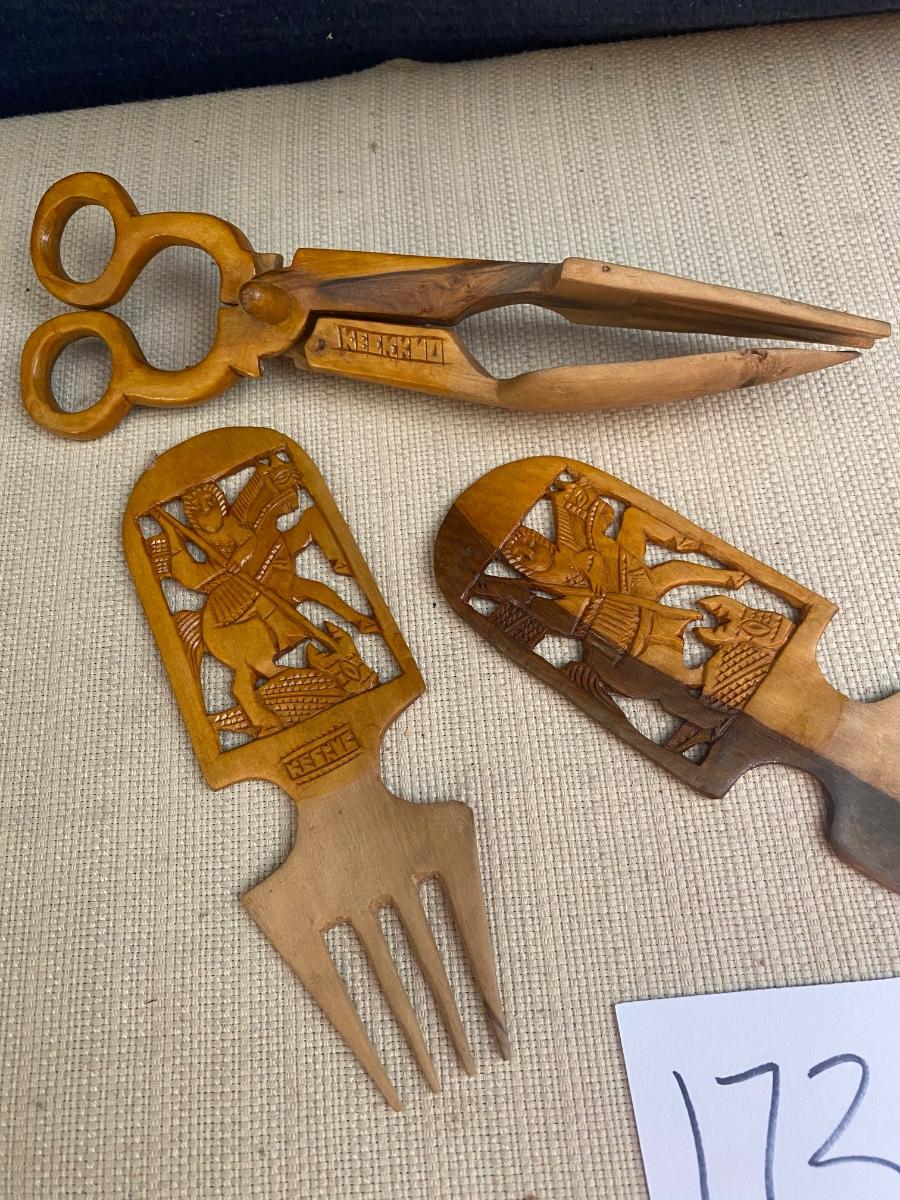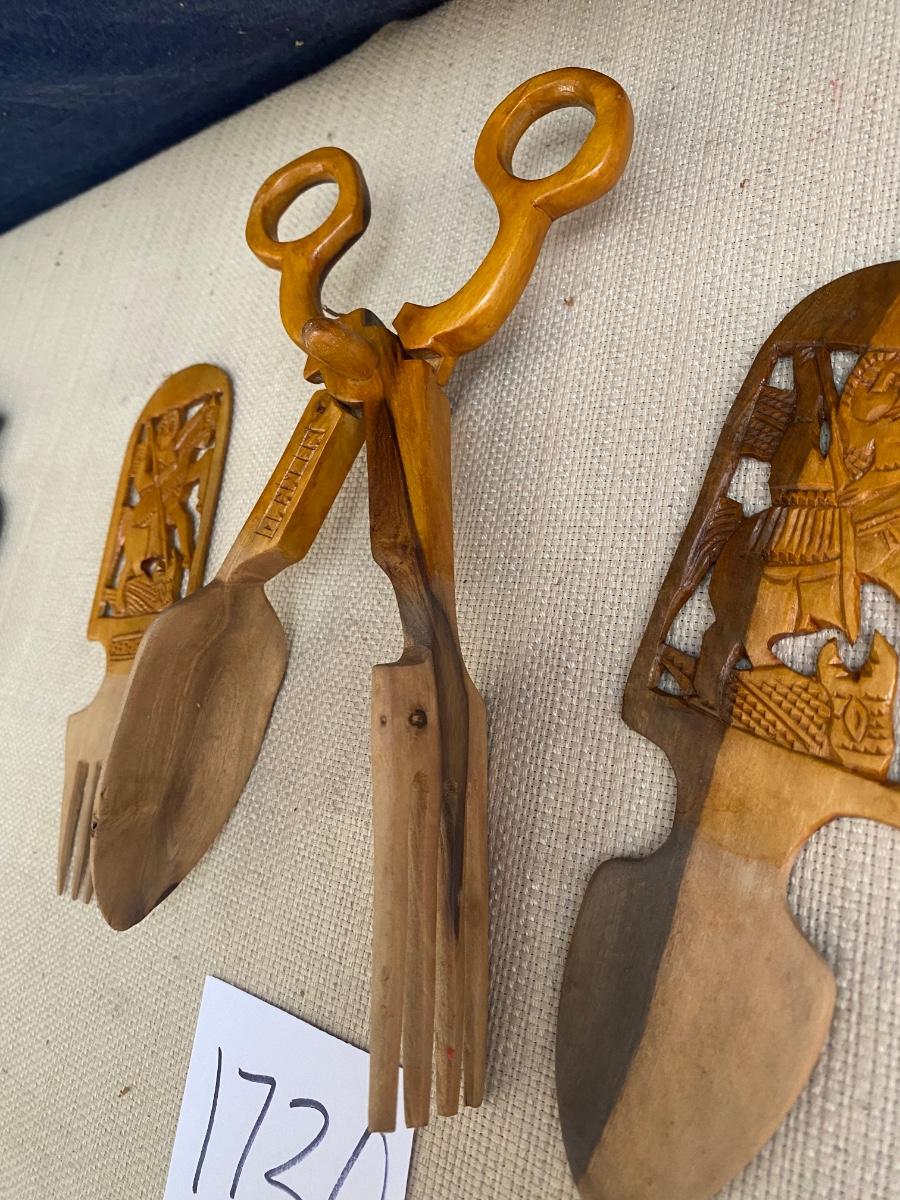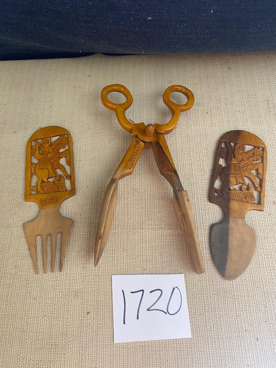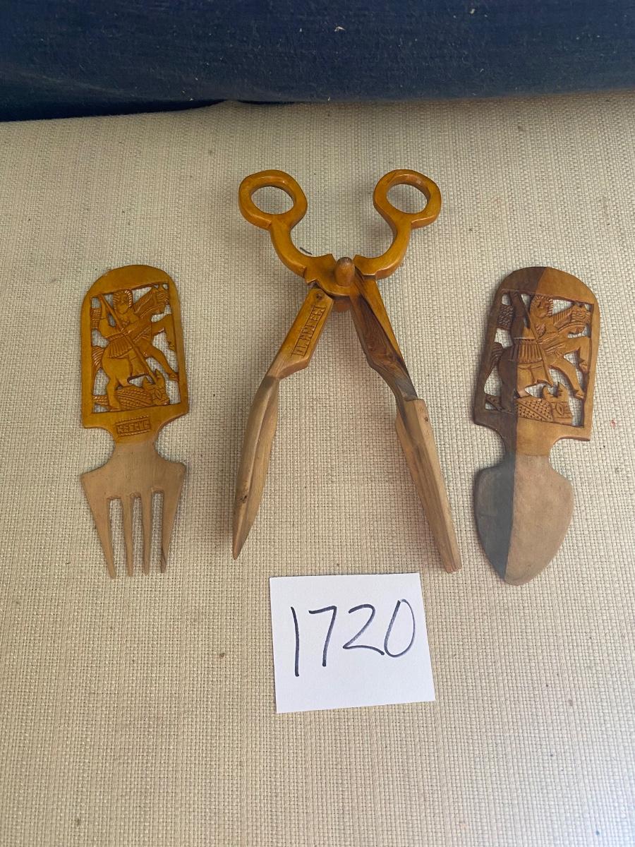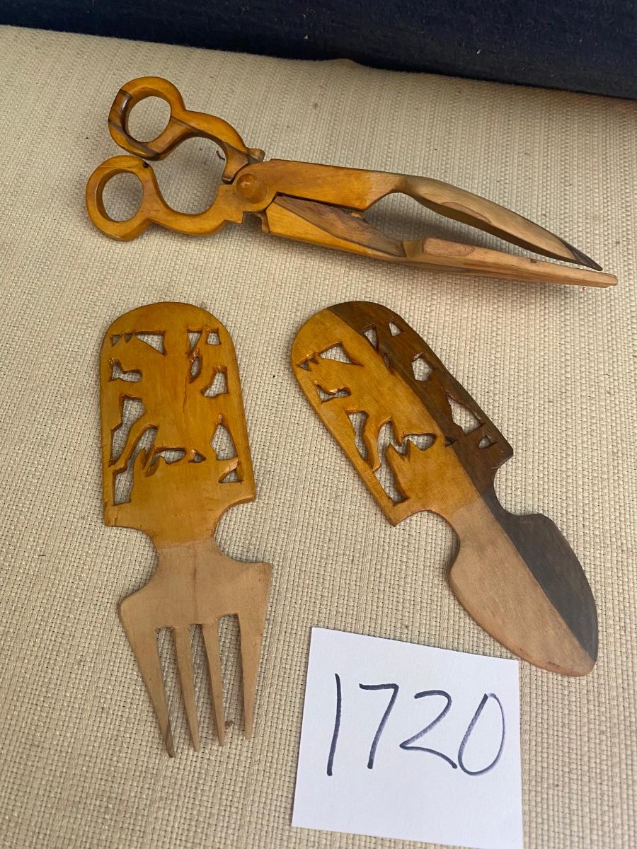Vintage Wooden Salad Tongs and Utensils