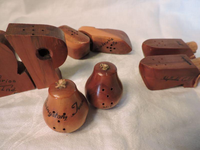 4 Sets of vintage wooden salt and pepper shakers. **Please read Terms and Conditions before placing a bid. Pick up is Wednesday, September 25 from 4pm to 7pm and Saturday, September 28 from 9am to 1pm in Williamstown, NJ. All sales are final. All sales are as is, where is. Please review all photos. Any props included in photos are not included in listing. All measurements are approximate.