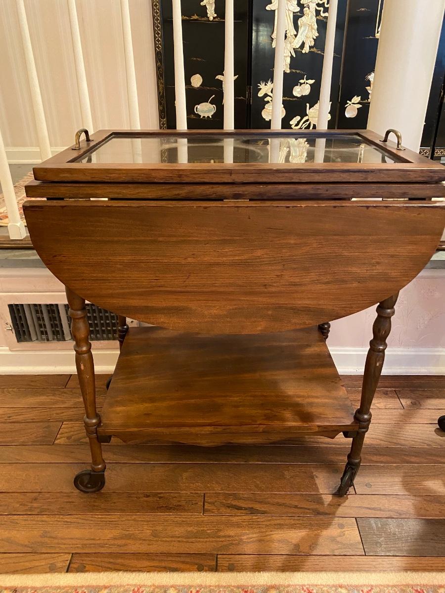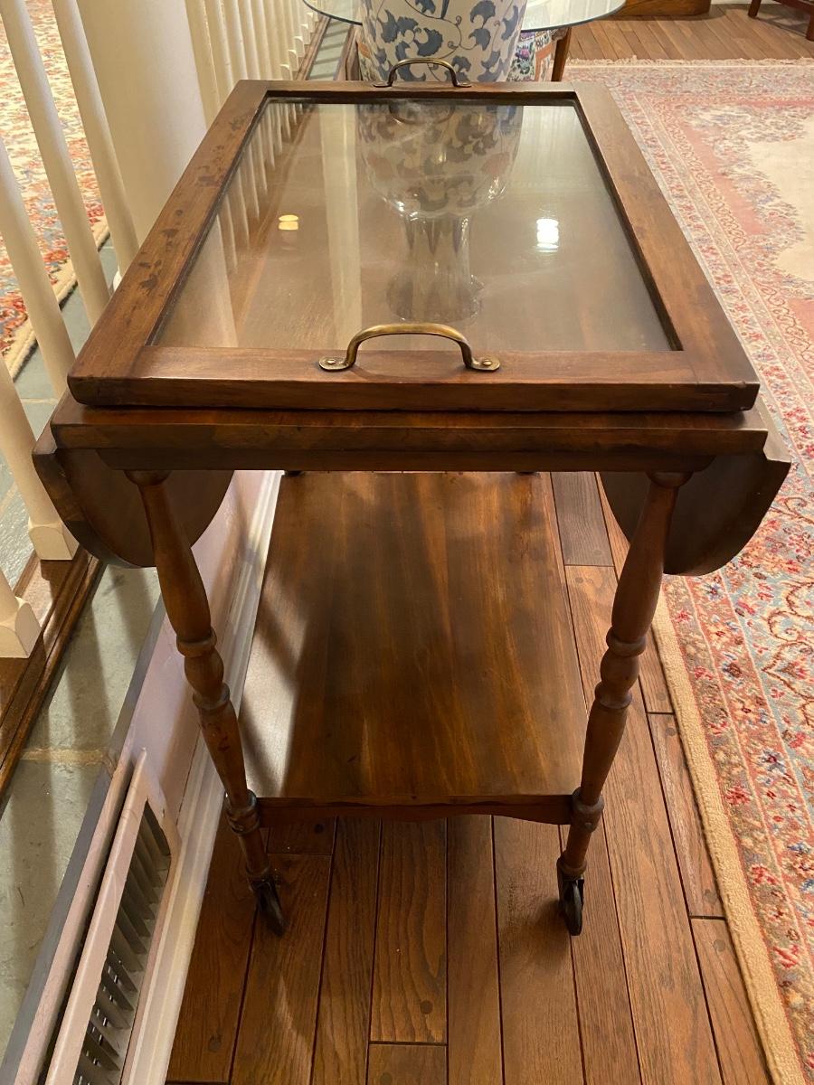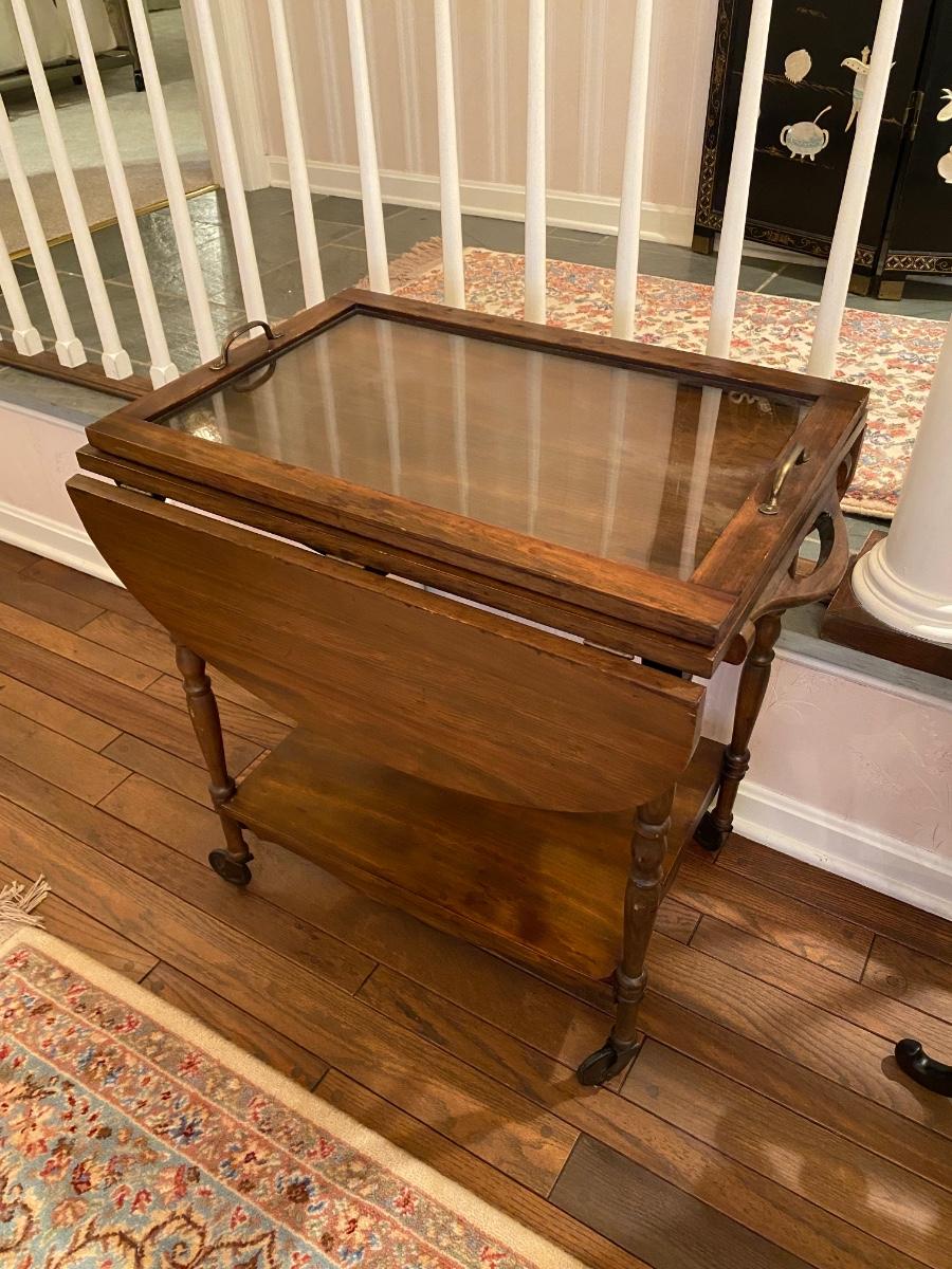Vintage Wooden Service Car W/ Glass Serving Tray