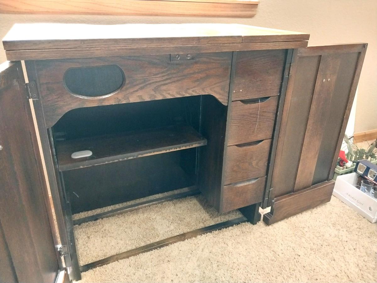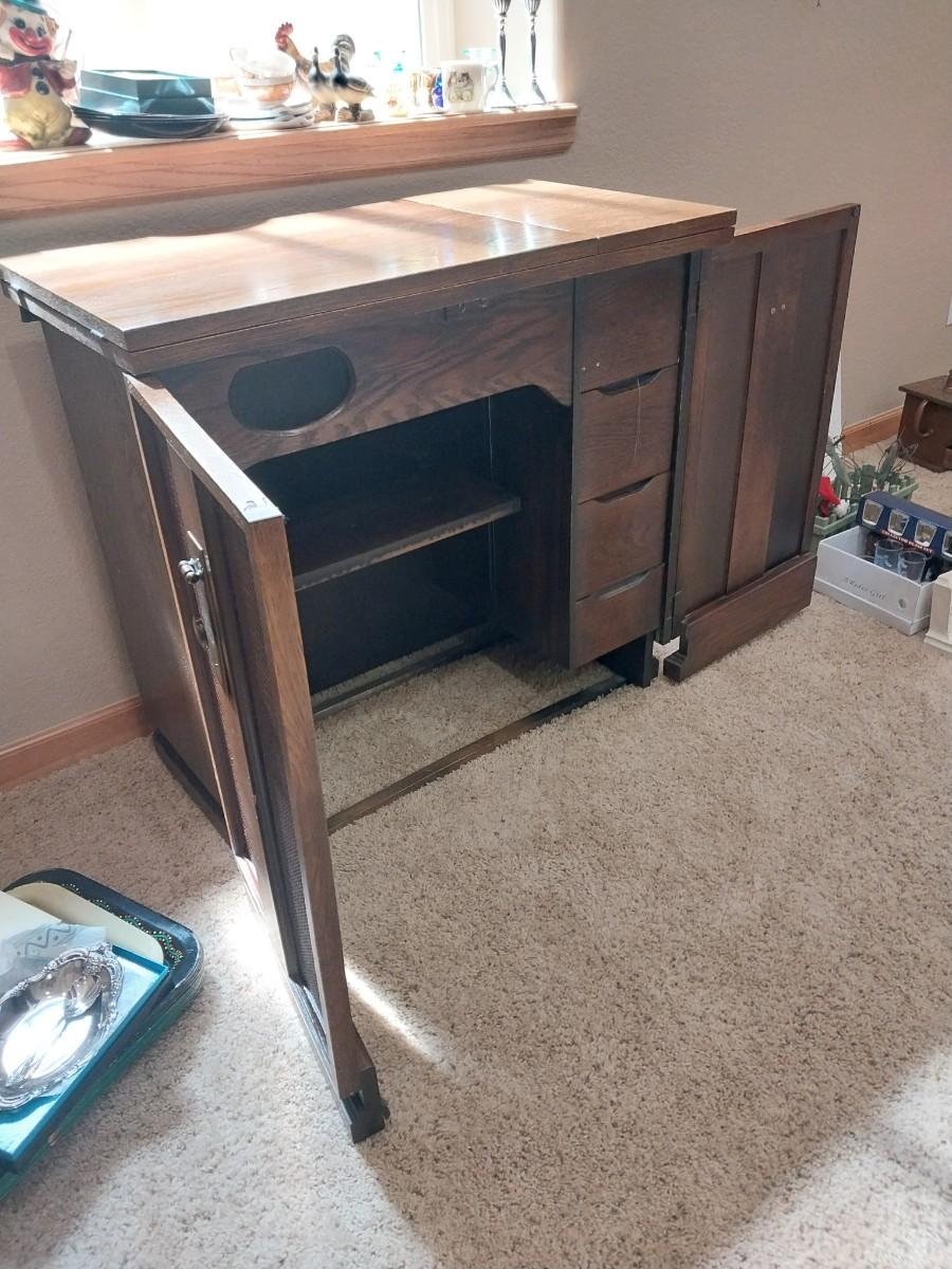 VINTAGE WOODEN SEWING MACHINE CABINET