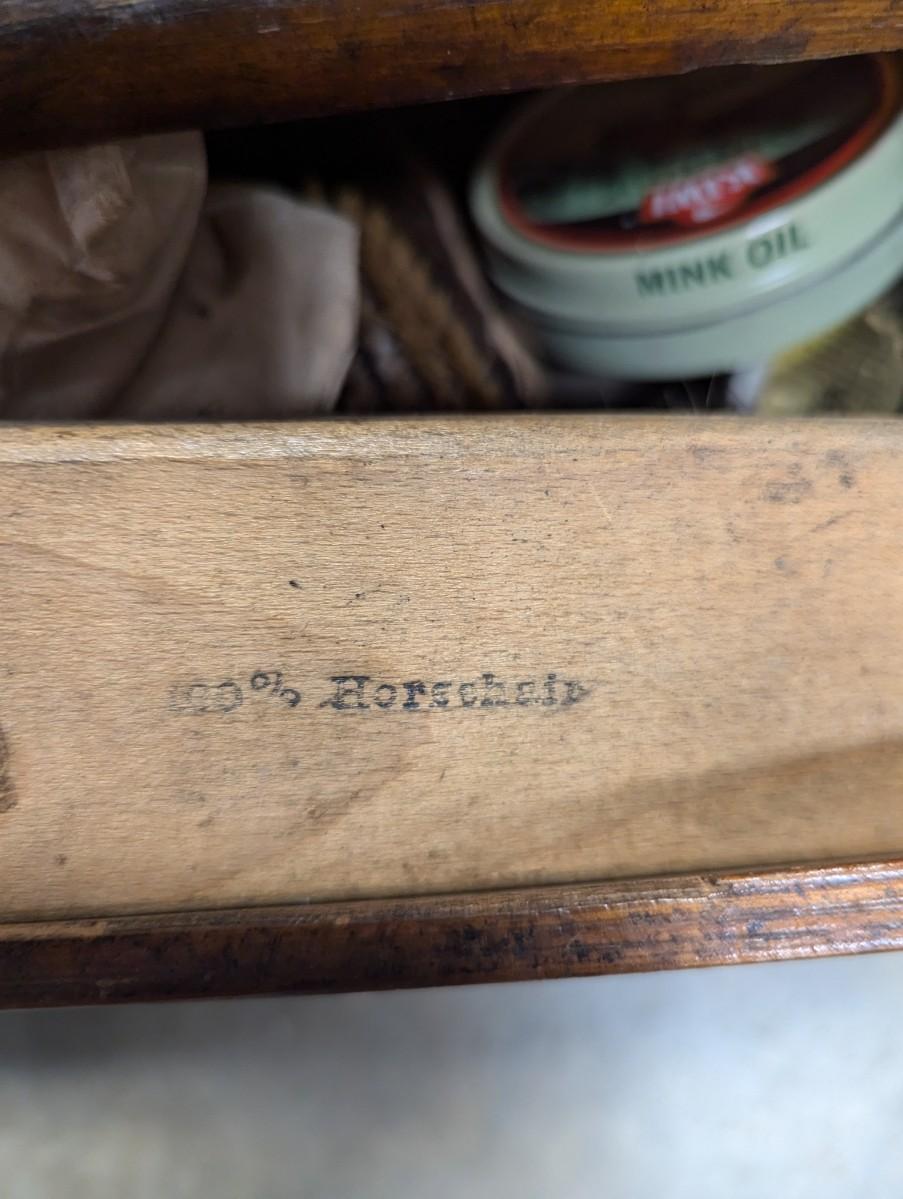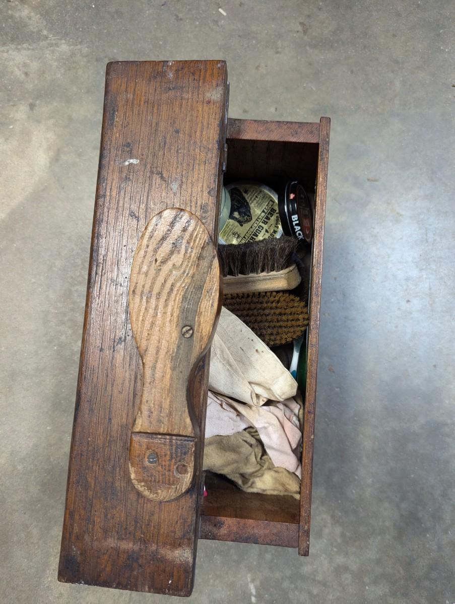 Vintage Wooden Shoe Shine Box With Horsehair Brushes