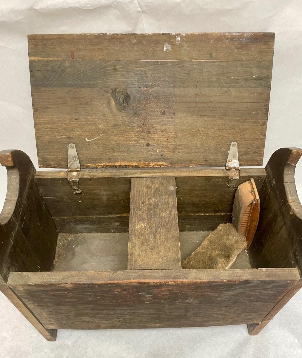 Vintage Wooden Hinged-Lid Seat Box, used for Shoe Shine