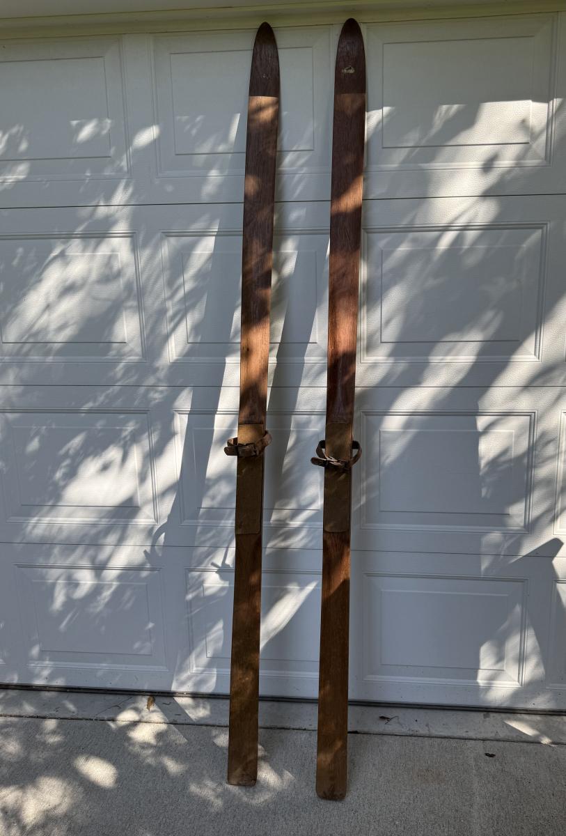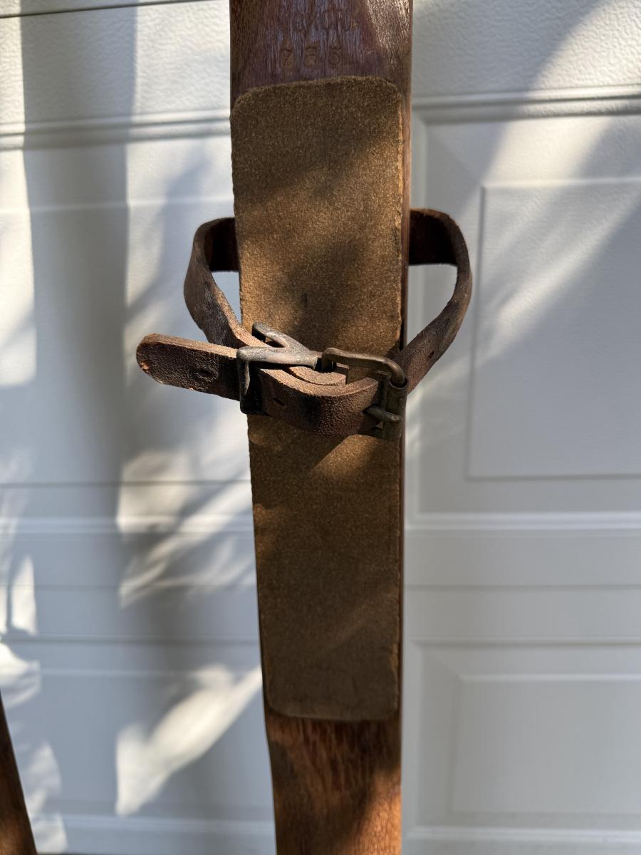 1920’s Vintage Hickory 885 wooden Skis by Strand w/leather straps