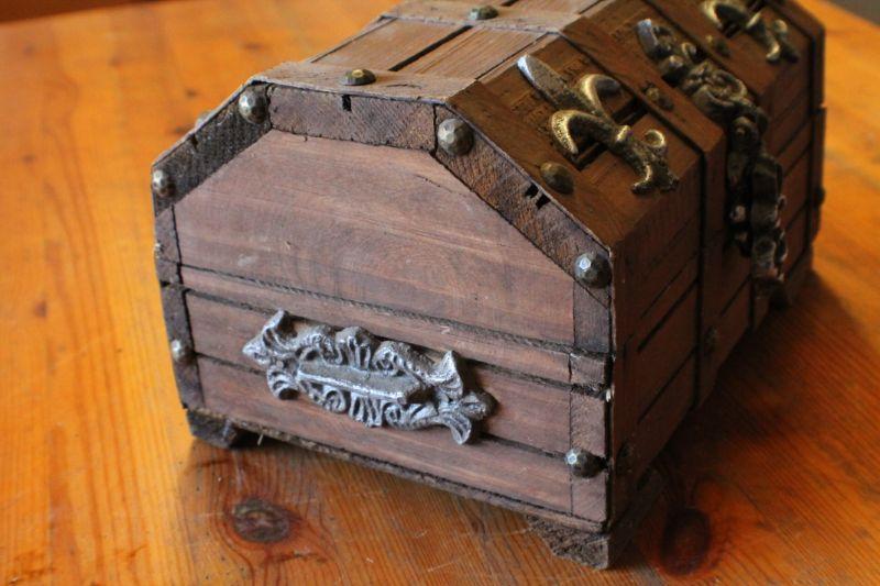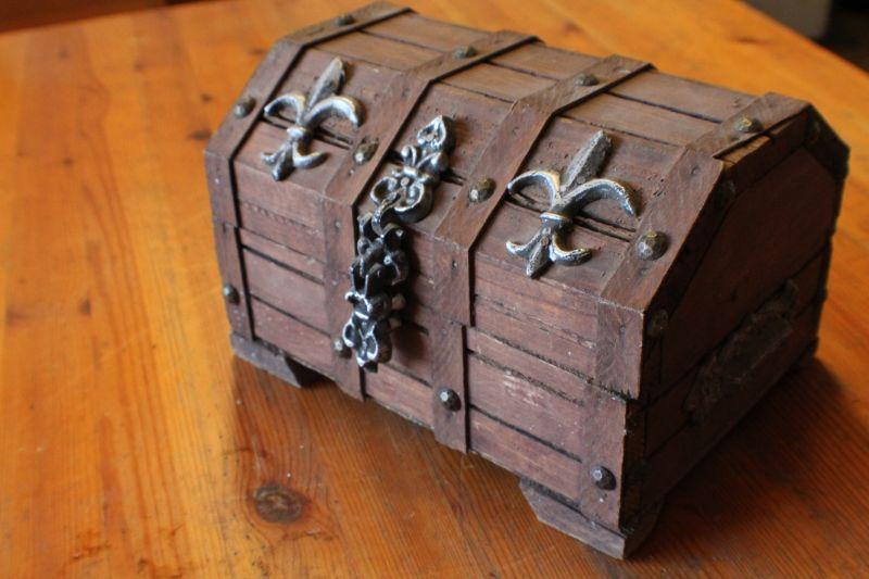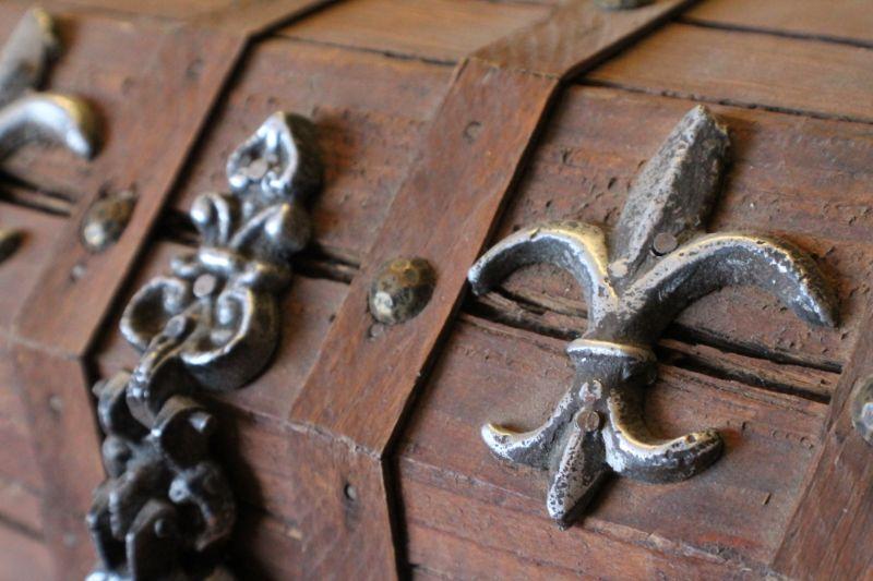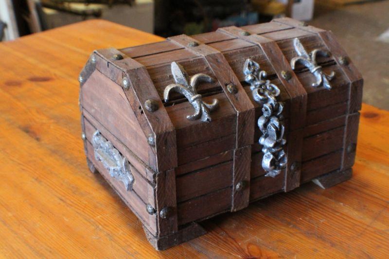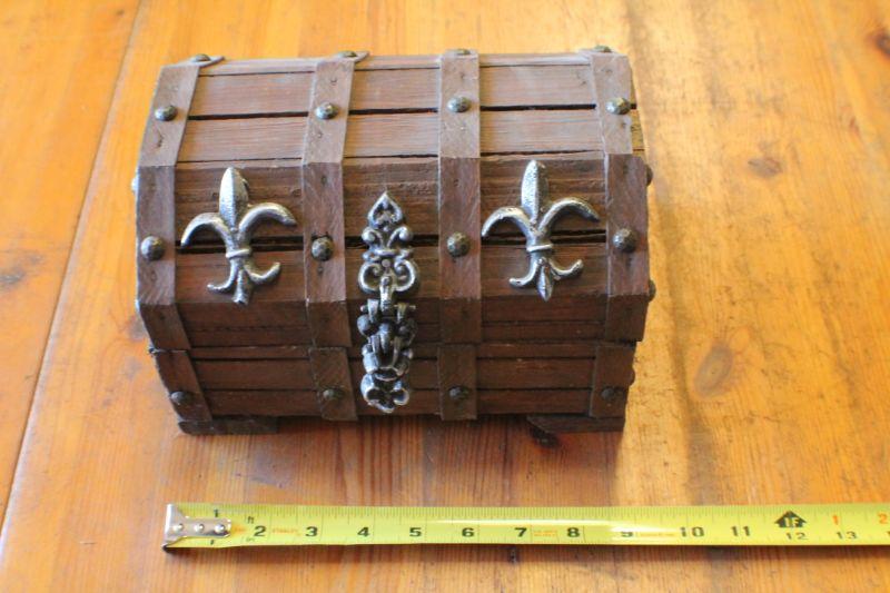 Lot #216: Vintage Wooden Storage Box w/ Fleur De Lis Theme