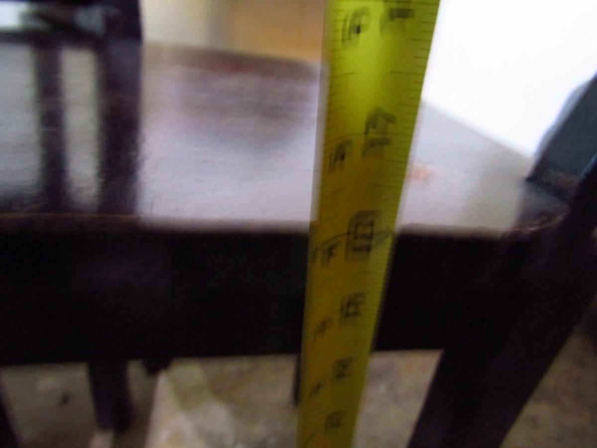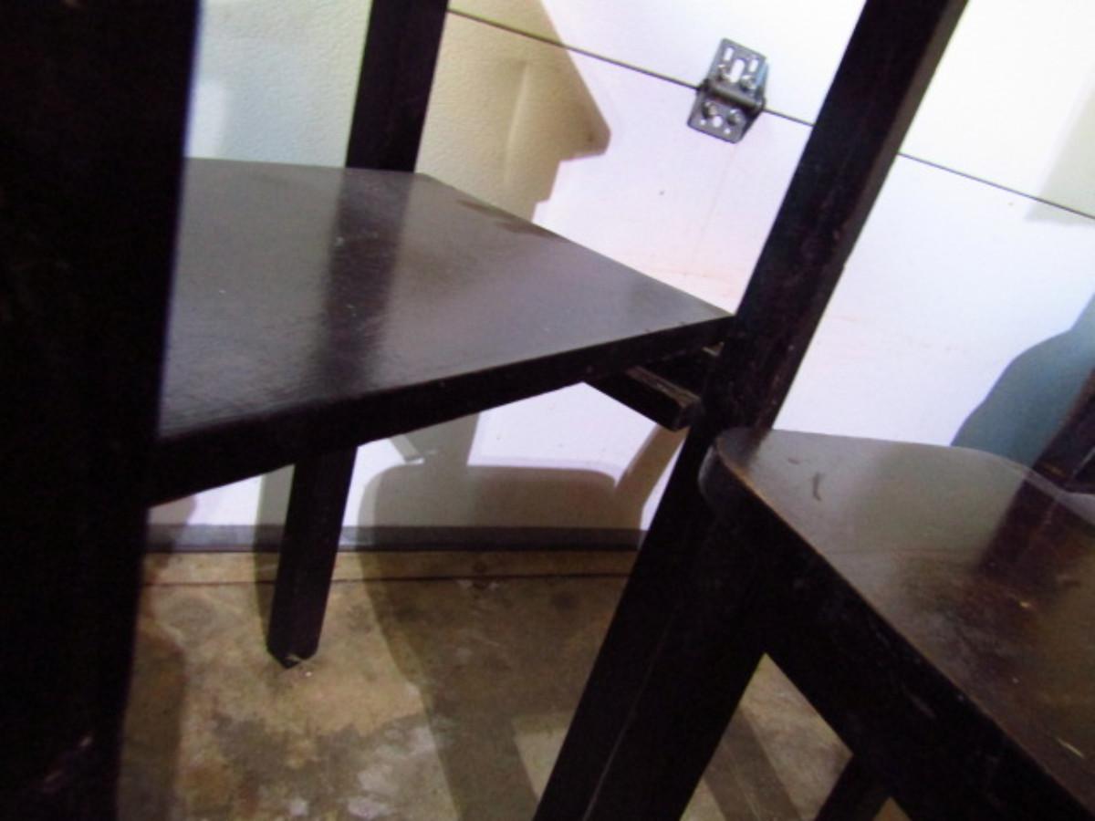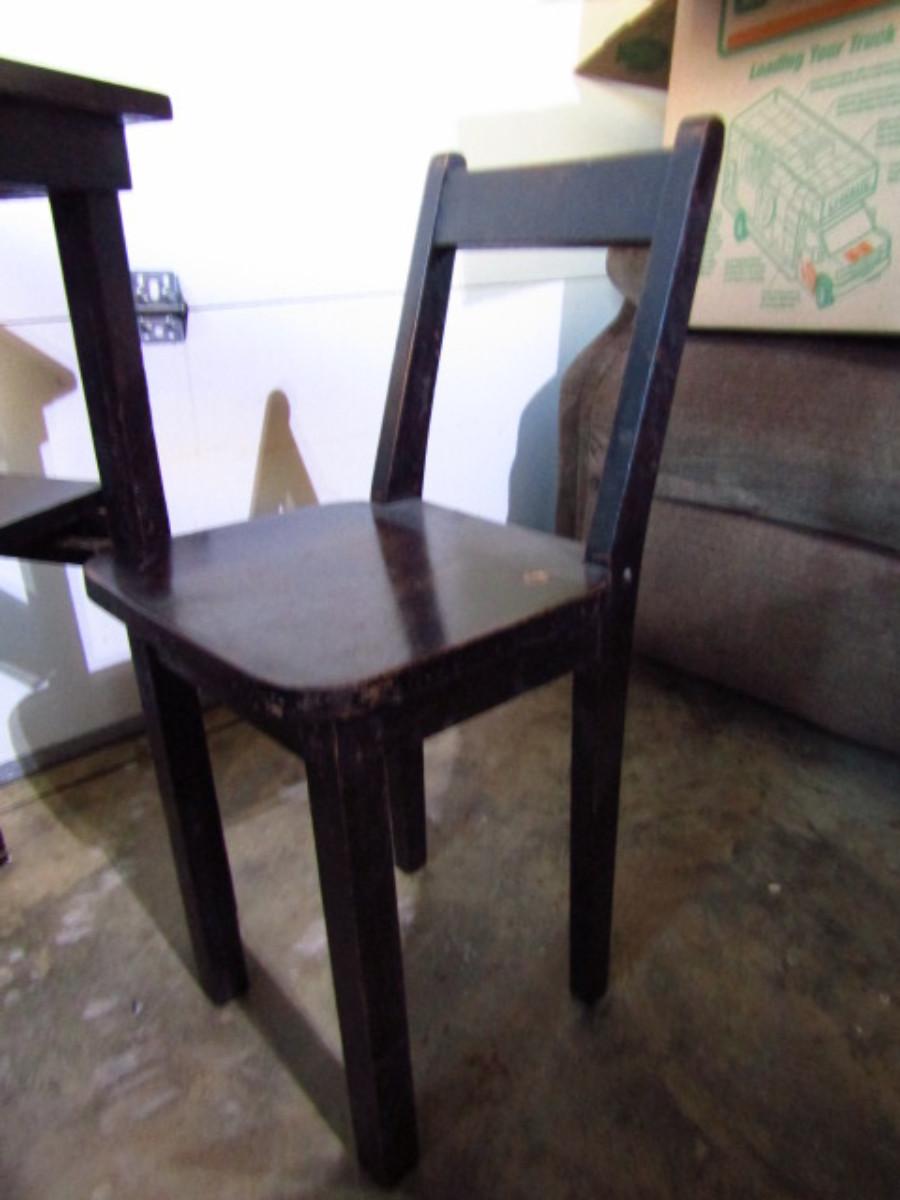 Vintage Wooden Table With Chair (G). Chair is stored under table. Legs are a loose and need to be tightened.