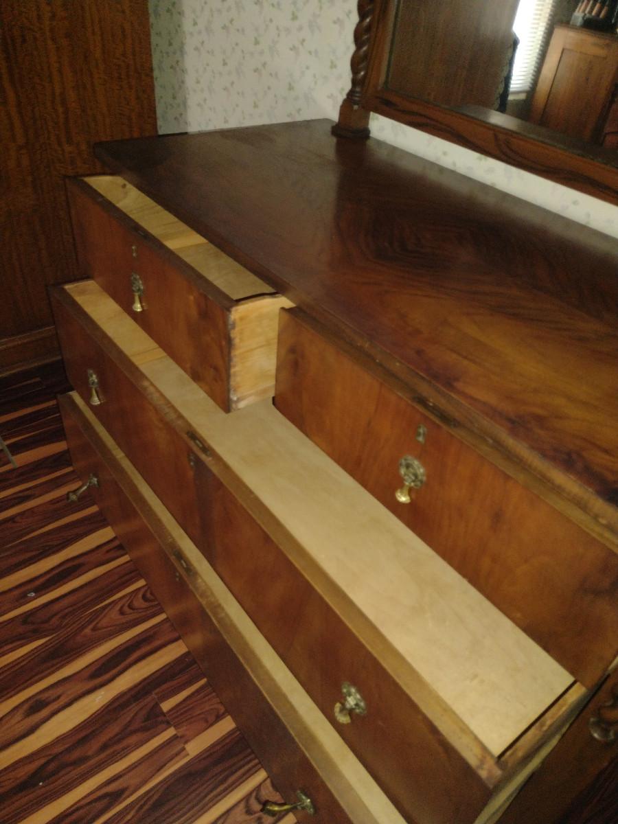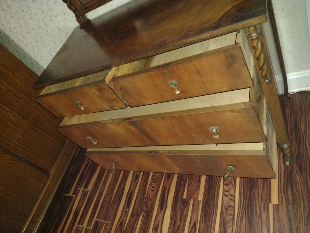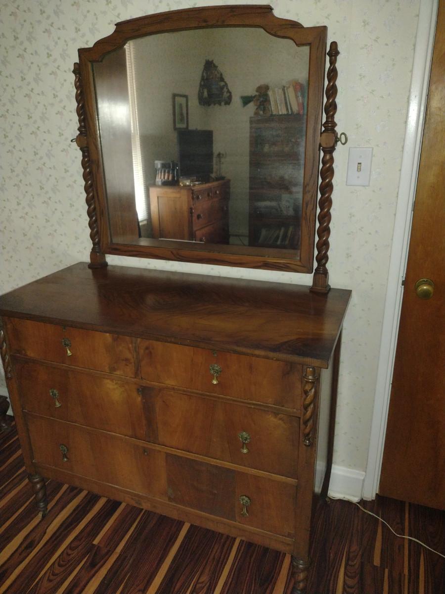Vintage Wooden Two Over Two Drawer Dresser with Mirror and Barley Twist Accents- Approx 43" Wide