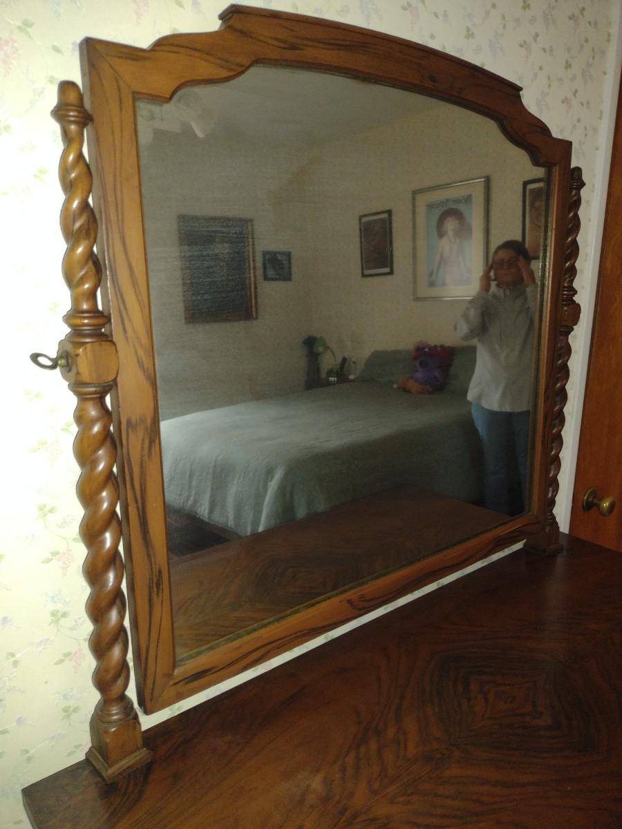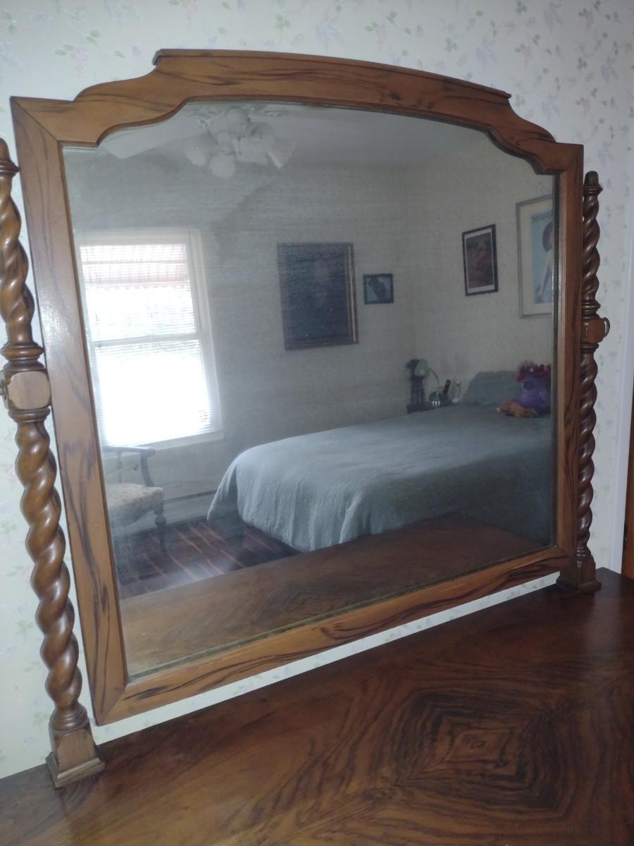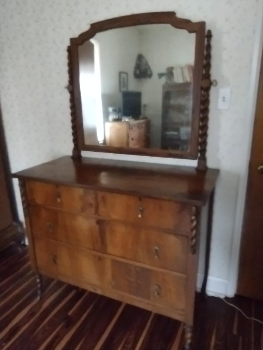 Vintage Wooden Two Over Two Drawer Dresser with Mirror and Barley Twist Accents- Approx 43" Wide (K)