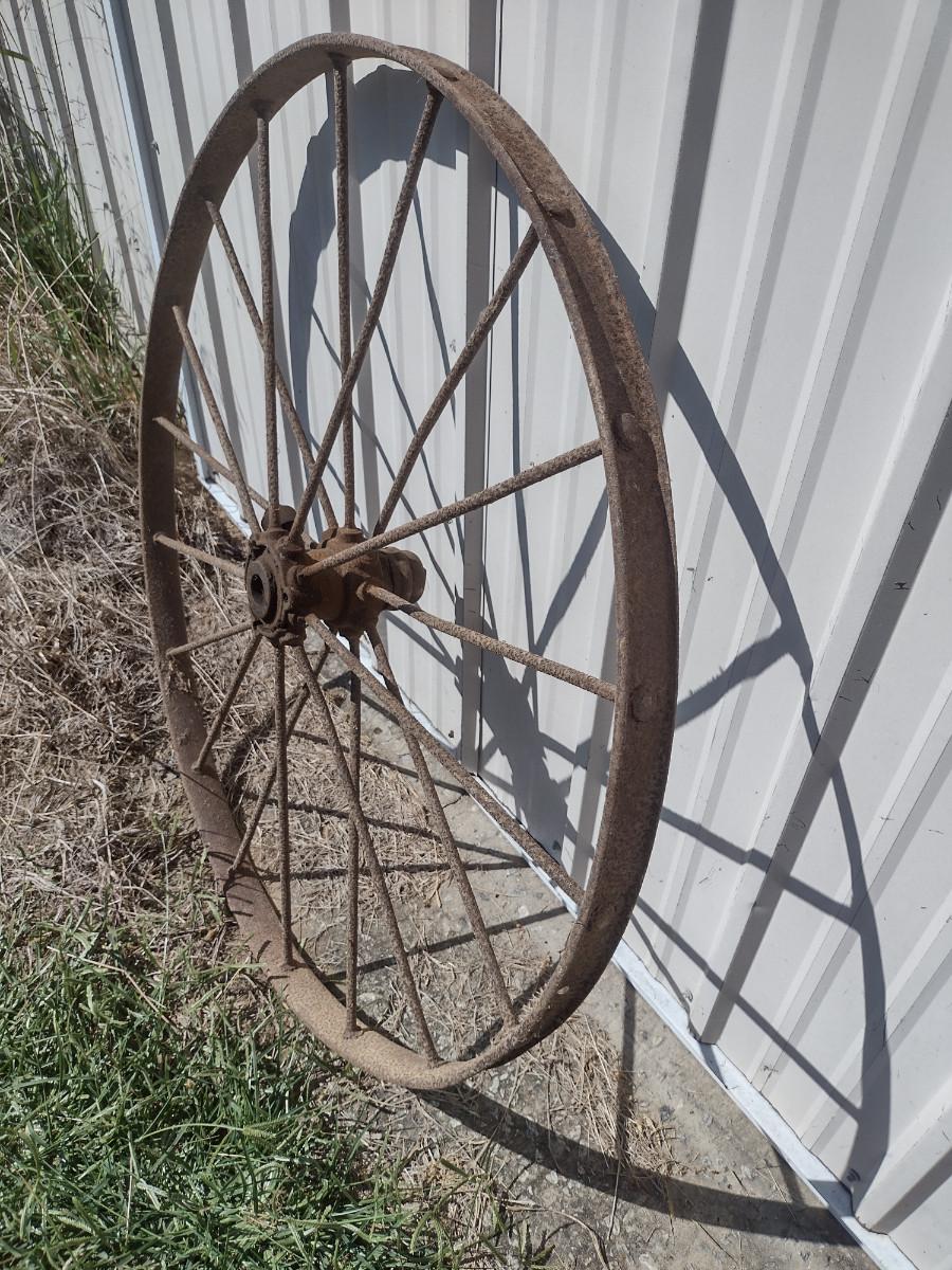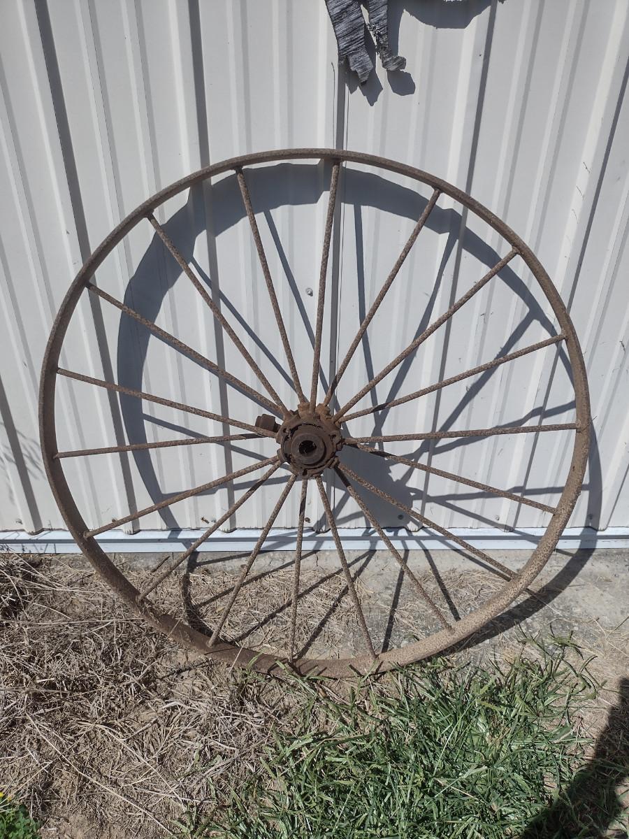 Vintage Wooden Wagon Wheel with Metal Hub- Approx 39" in Diameter (#3)