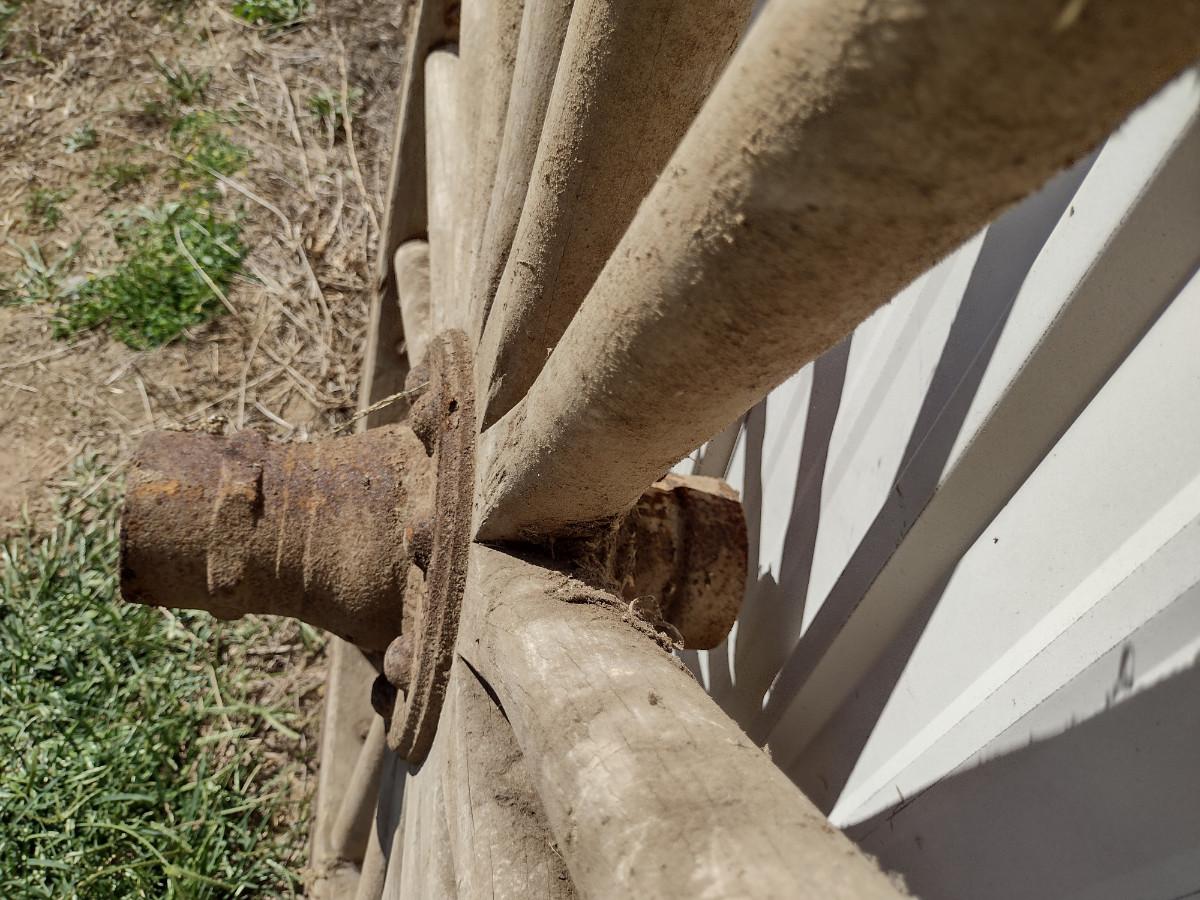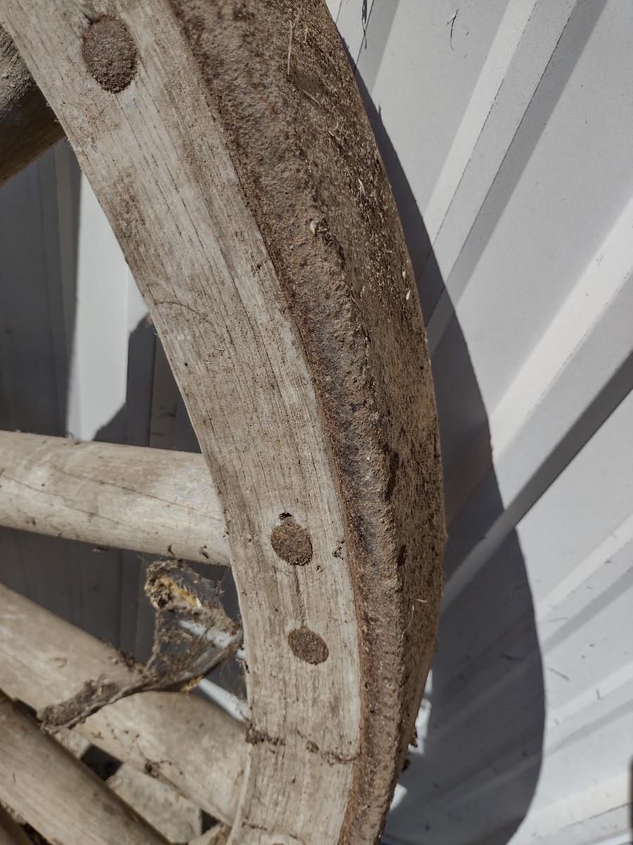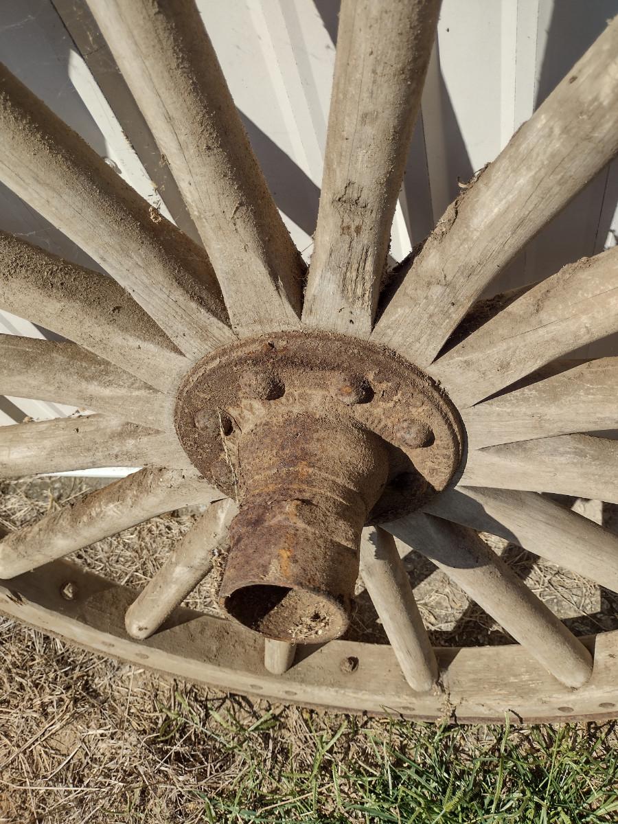 Vintage Wooden Wagon Wheel with Metal Hub and Tread- Approx 46" in Diameter (#8)