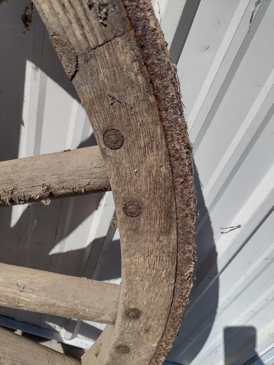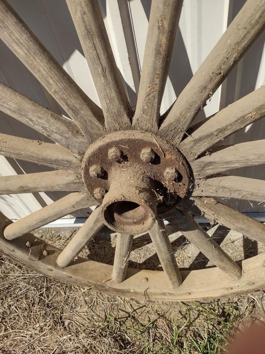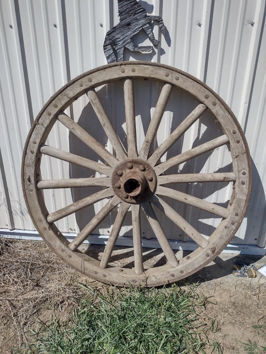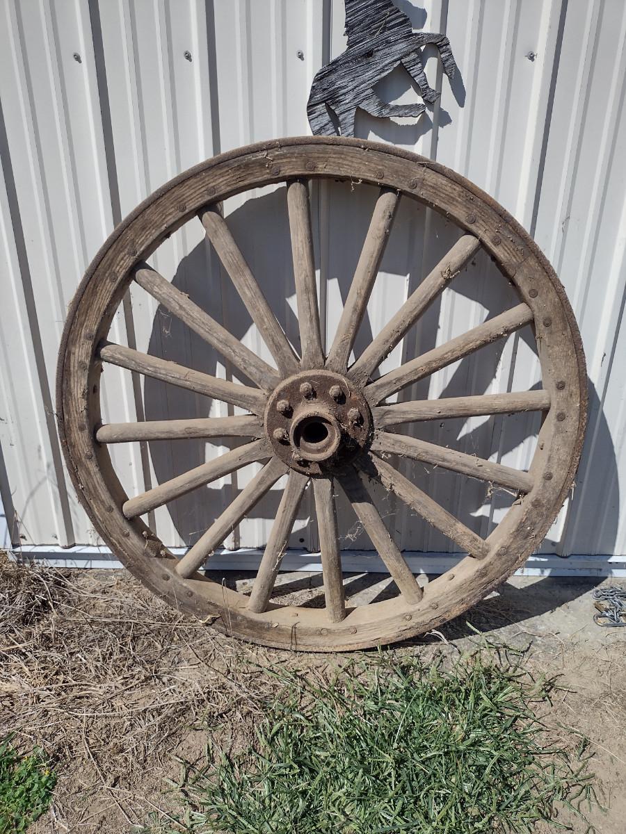 Vintage Wooden Wagon Wheel with Metal Hub and Tread- Approx 46" in Diameter (#9)