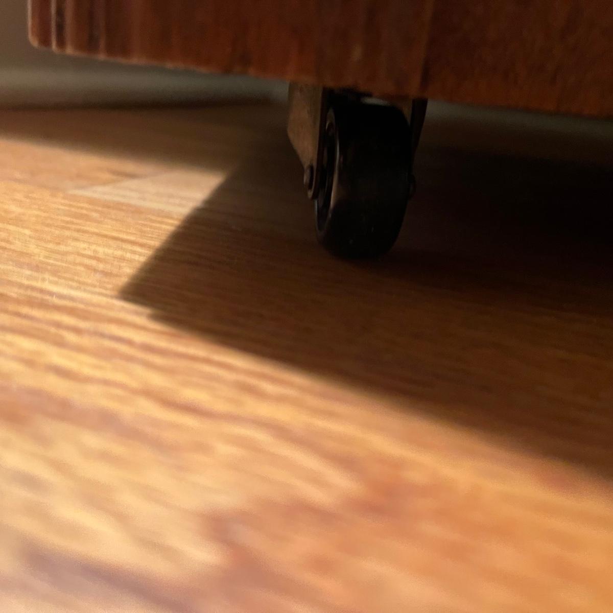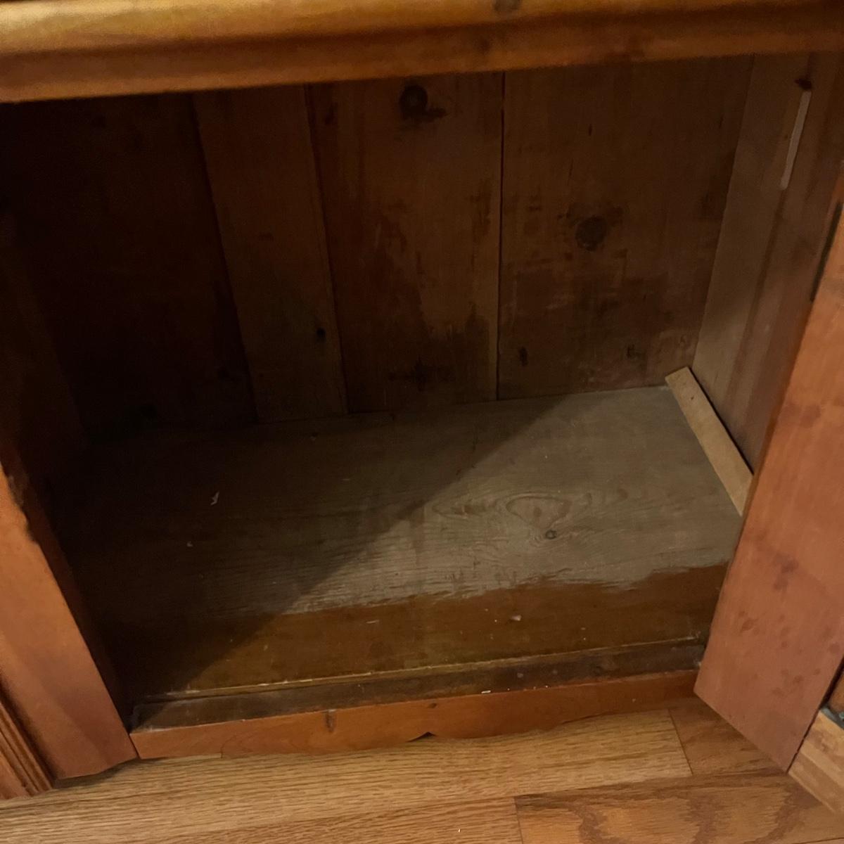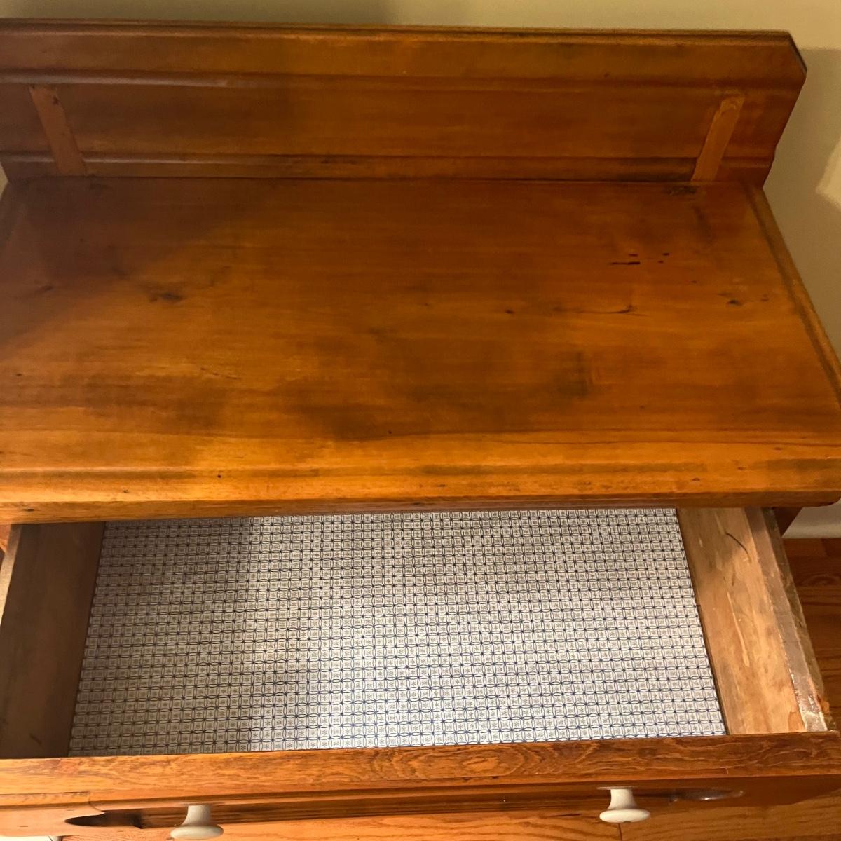 Lot includes a vintage primitive style wooden washstand with a dovetailed drawer and ceramic knobs with a floral detail. There is a locking cabinet underneath with key. Stand is on casters. Washstand measures 15” x 29” x 37”H. Local Pickup Only. Winning bidder must bring assistance to help move and load this item due to its weight and/or size.