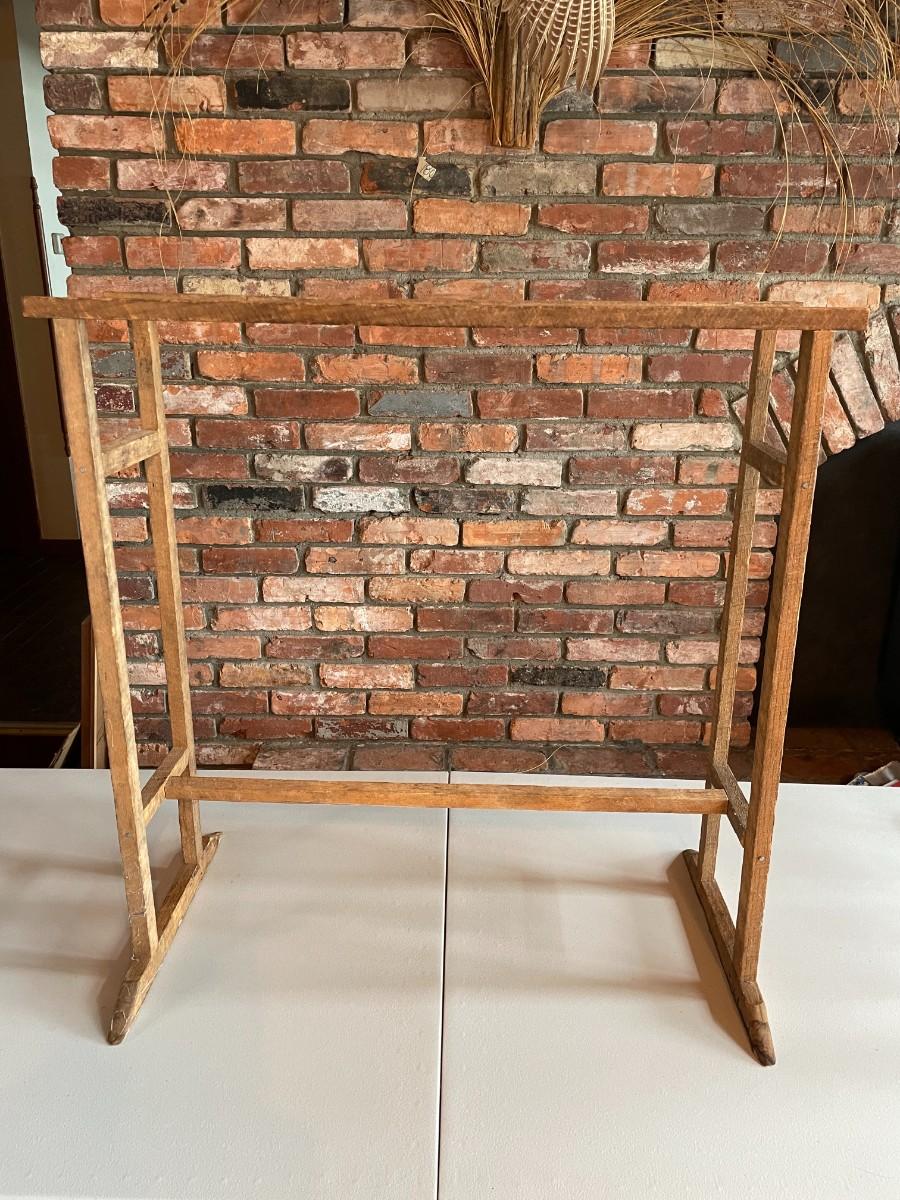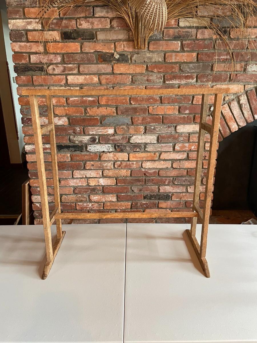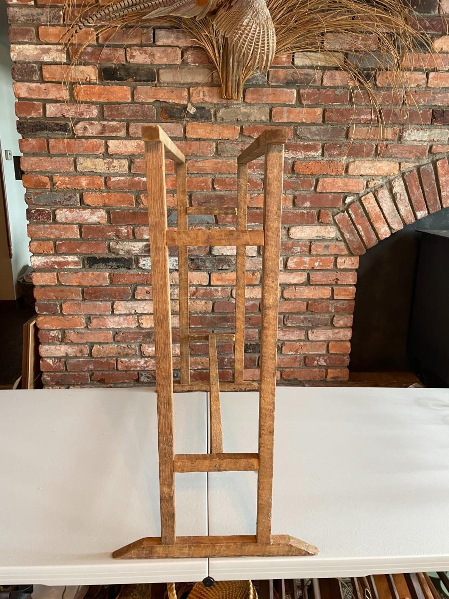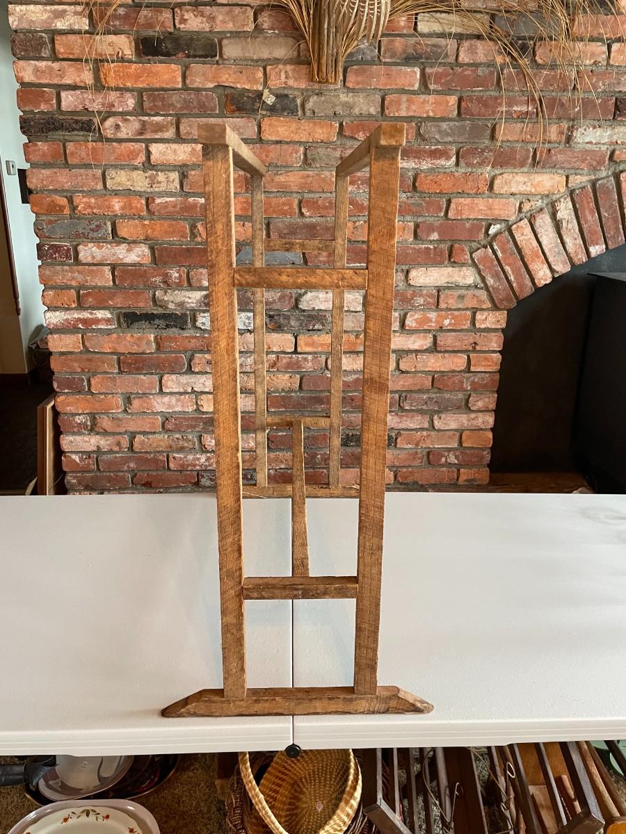 Beautiful wooden quilt rack. The rack is a little shaky due to previous use. 30L x 8 1/2w x 30H.