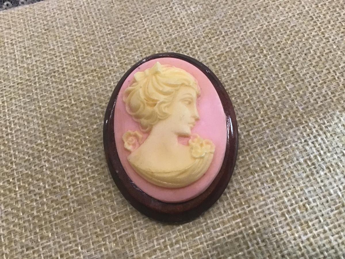 Vintage Wood/Plastic Or Celluloid Cameo brooch pink