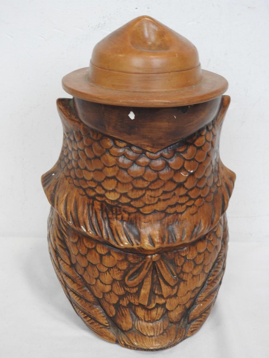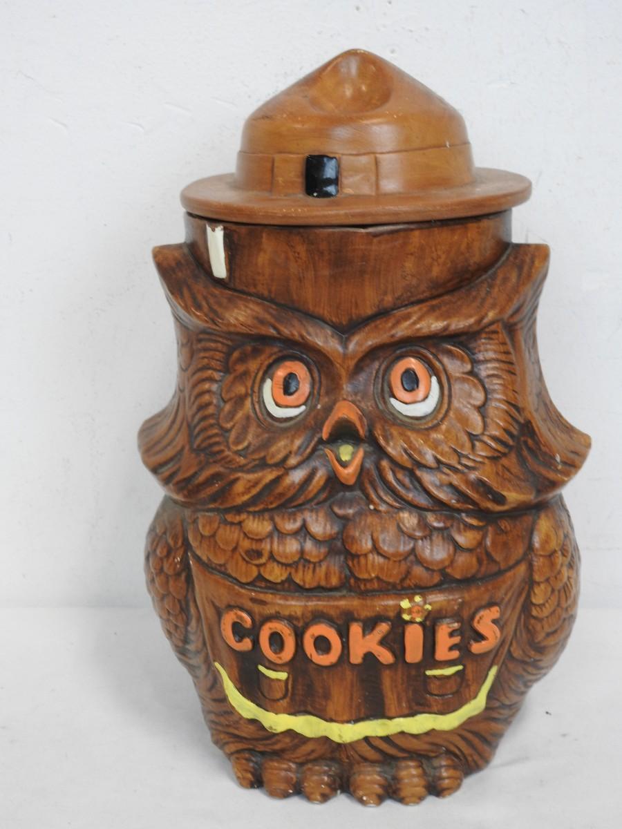 Vintage Woodsy Owl w/ Smokey the Bear Hat as the Lid, Painted Ceramic Cookie Jar