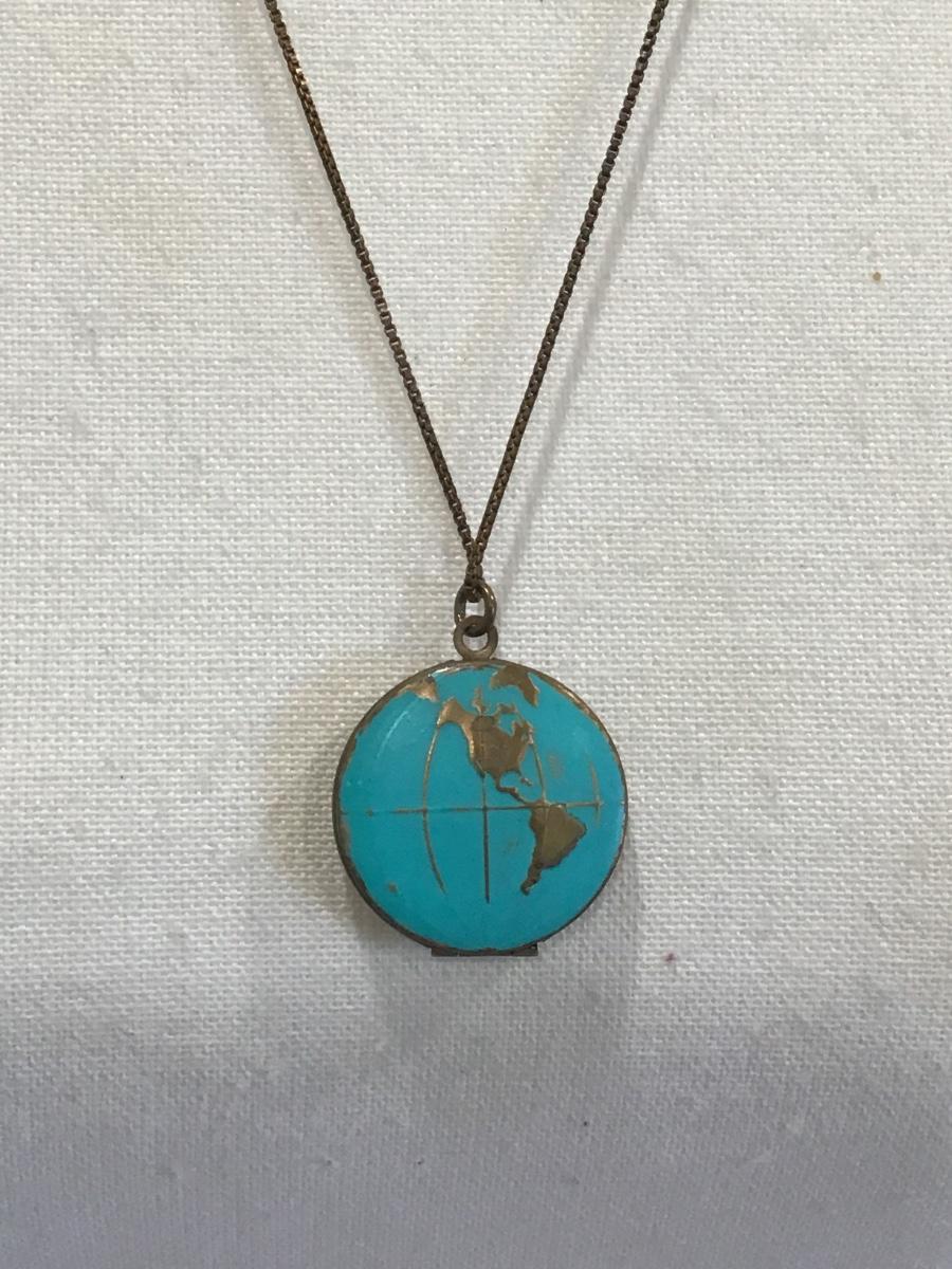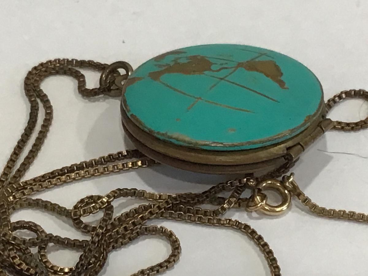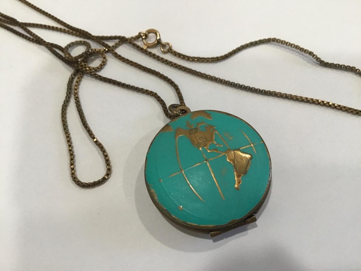 Vintage World Globe Locket Gold filled Chain