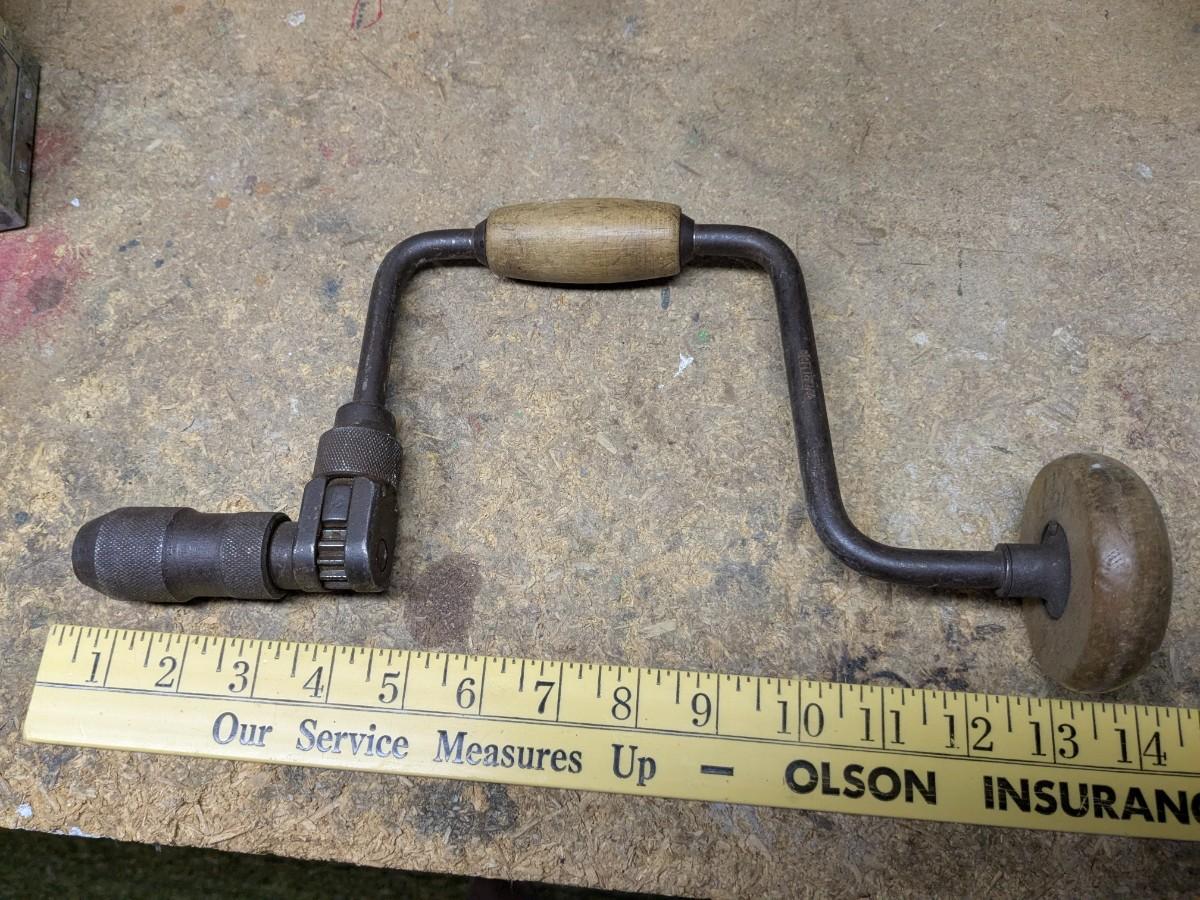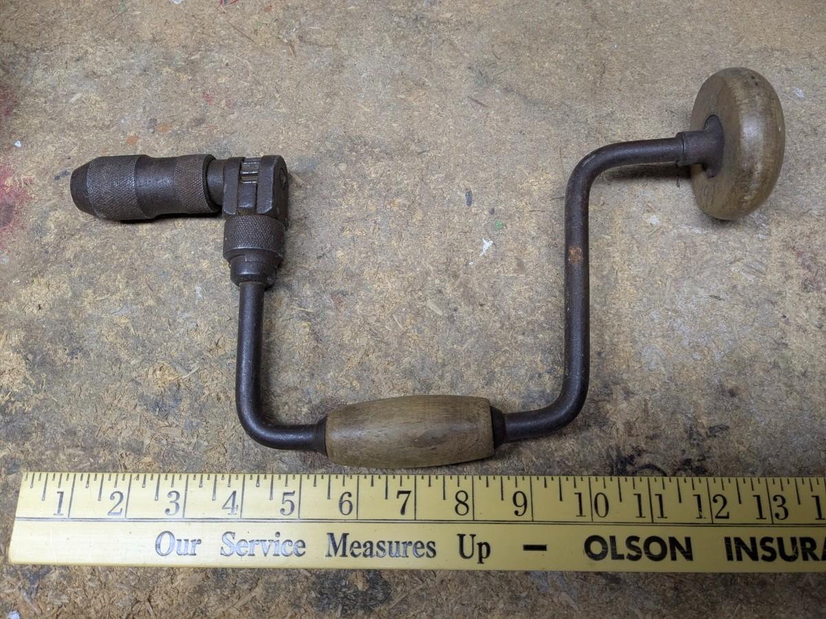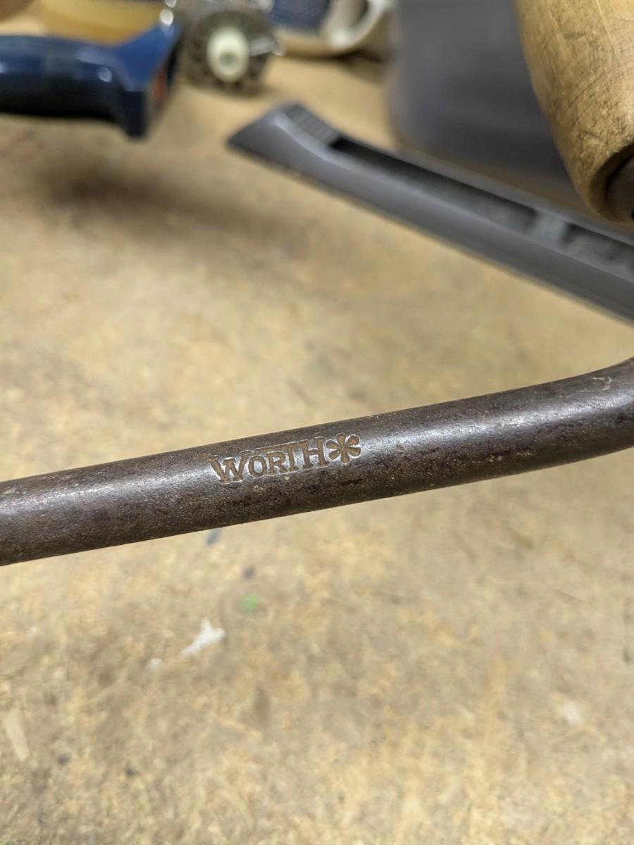 VINTAGE Worth USA MADE WOOD & IRON RATCHETING BIT BRACE HAND DRILLING TOOL