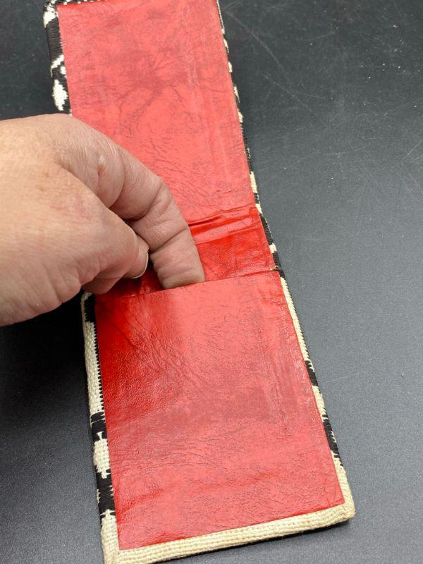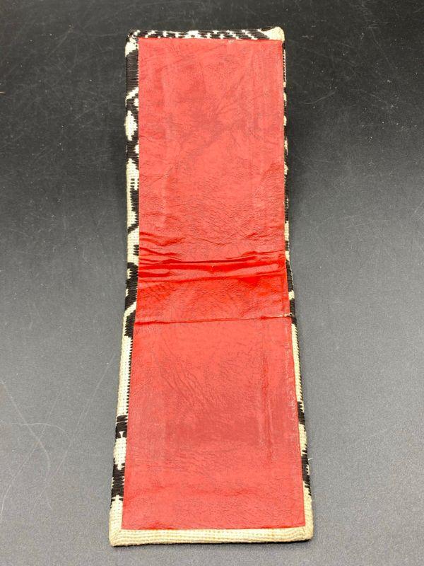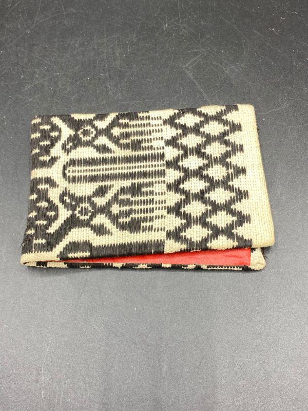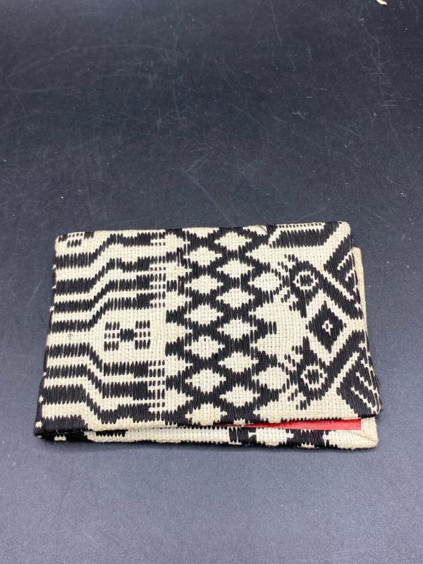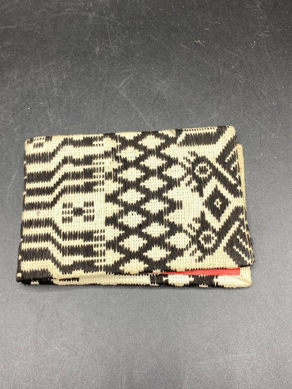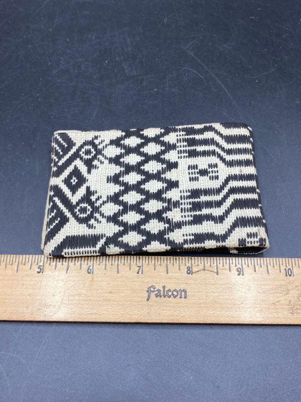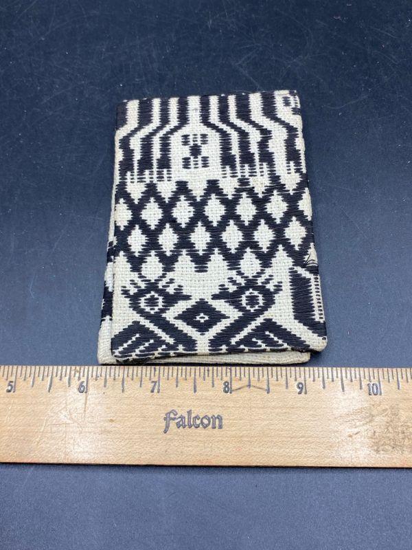 Cool ethnic styled woven notepad scorepad book cover. Not really a wallet only has one pocket, I think it is for small notepads, slide the cardboard back in slot. Age and origin unknown. About 3"x5" size.