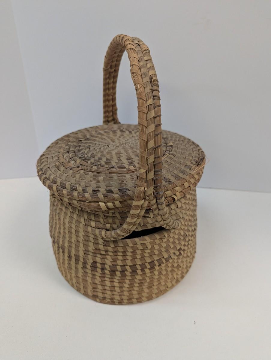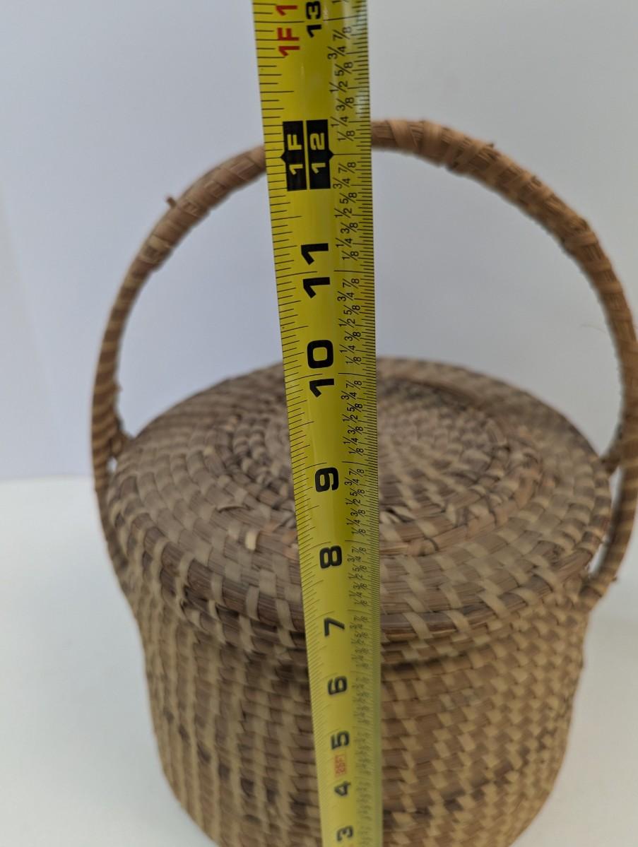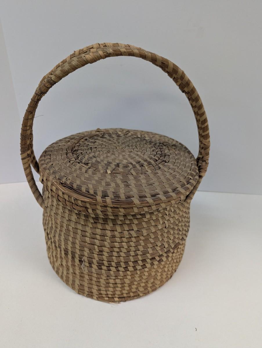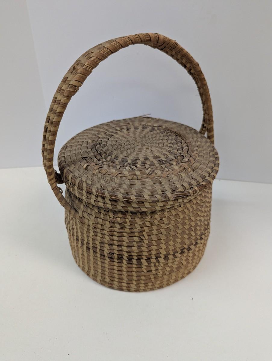 Vintage Woven Sweet Grass Basket Lidded Basket With Handle