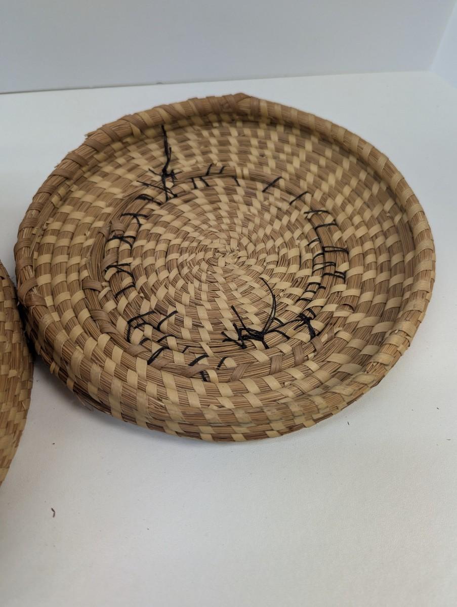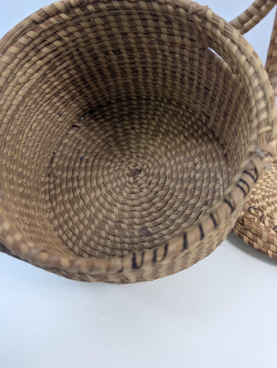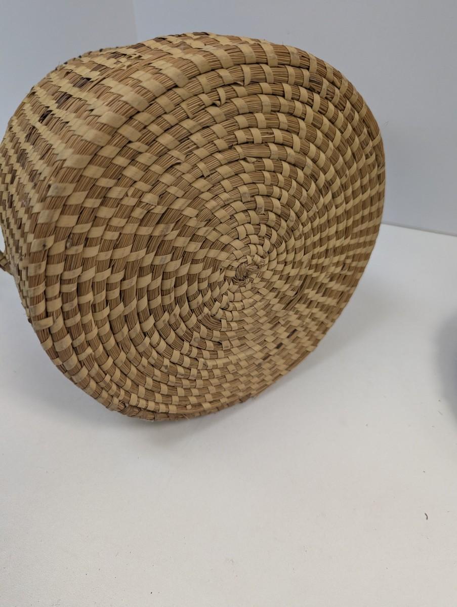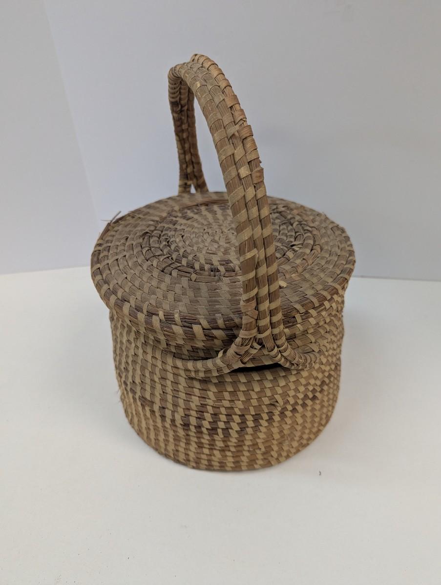 Vintage Woven Sweet Grass Basket Lidded Basket With Handle
