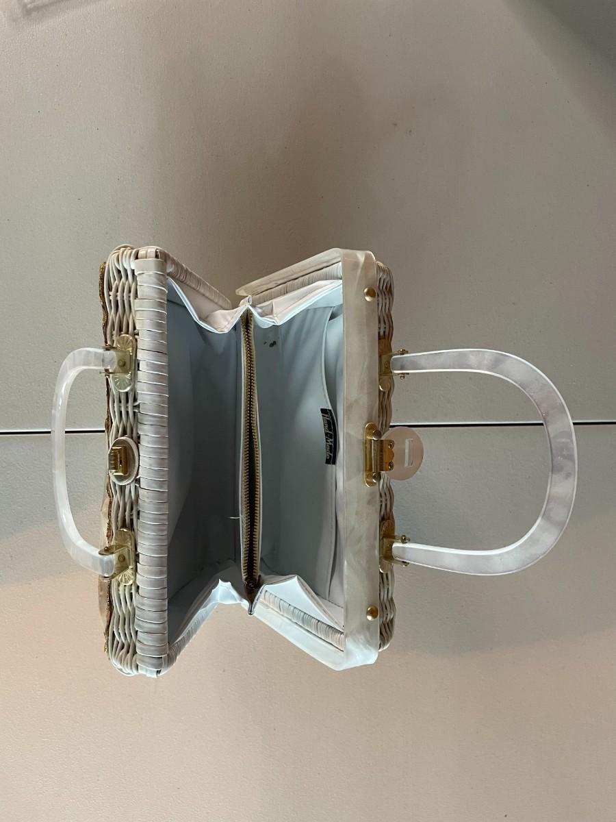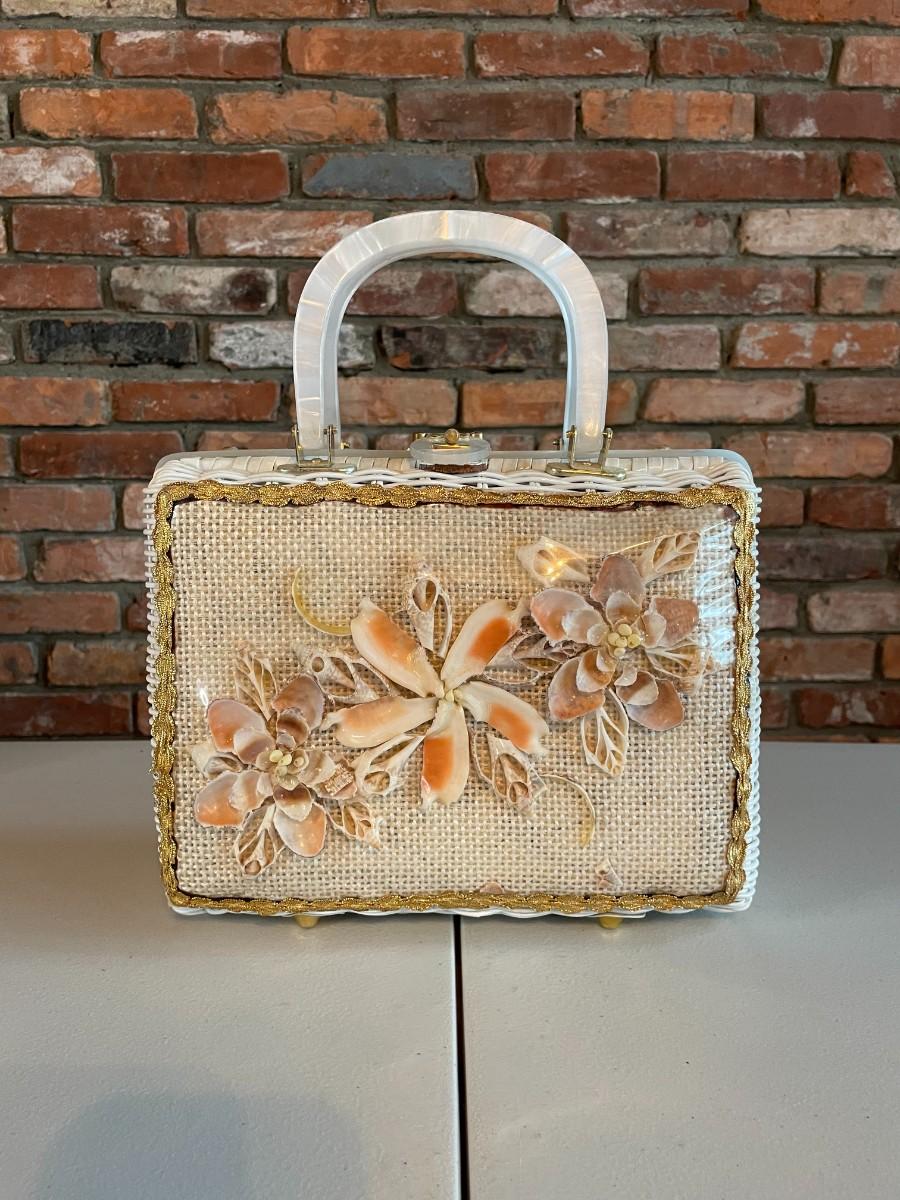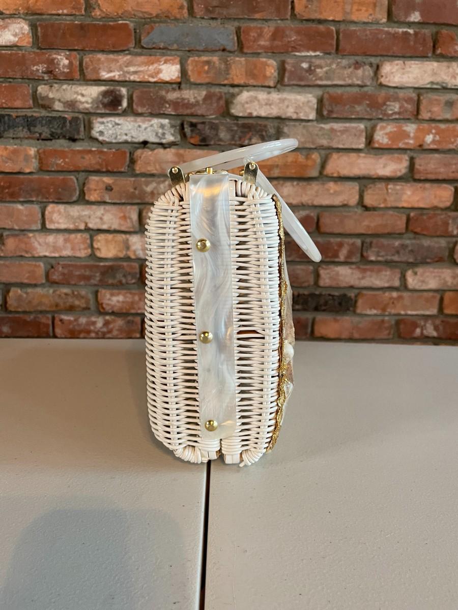 Vintage Woven Whicker Seashell Handbag Purse Lucite Details