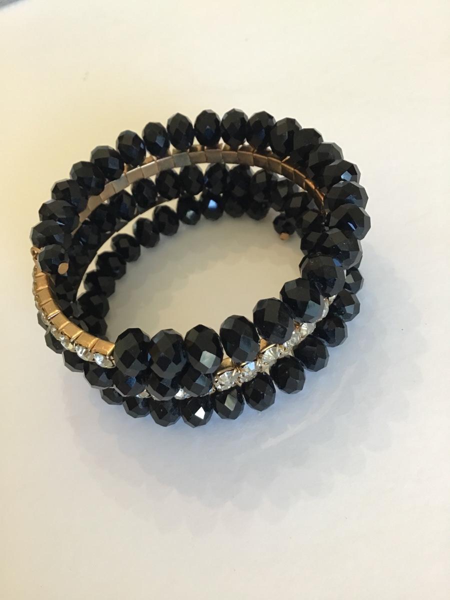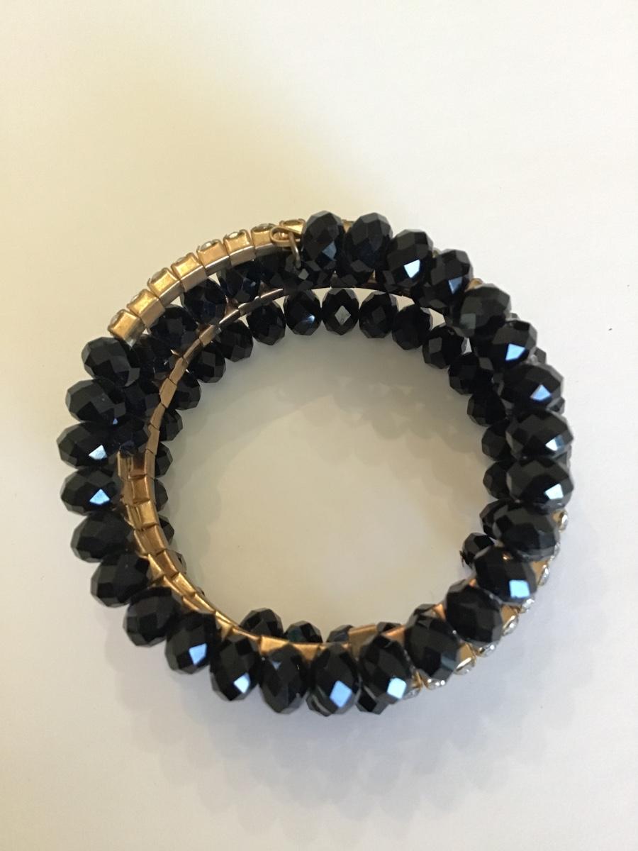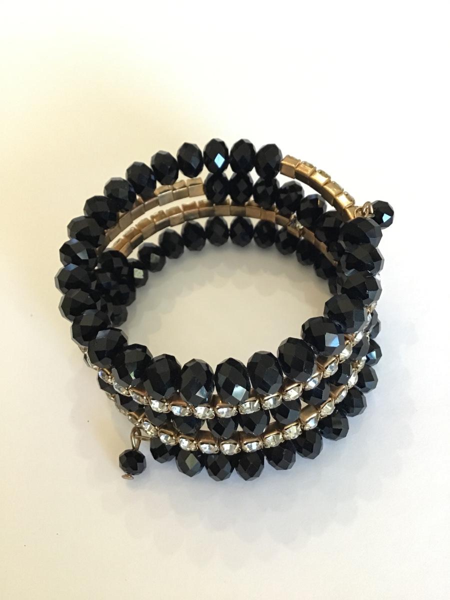 Vintage wrap bracelet with black faceted glass beads and Rhinestones