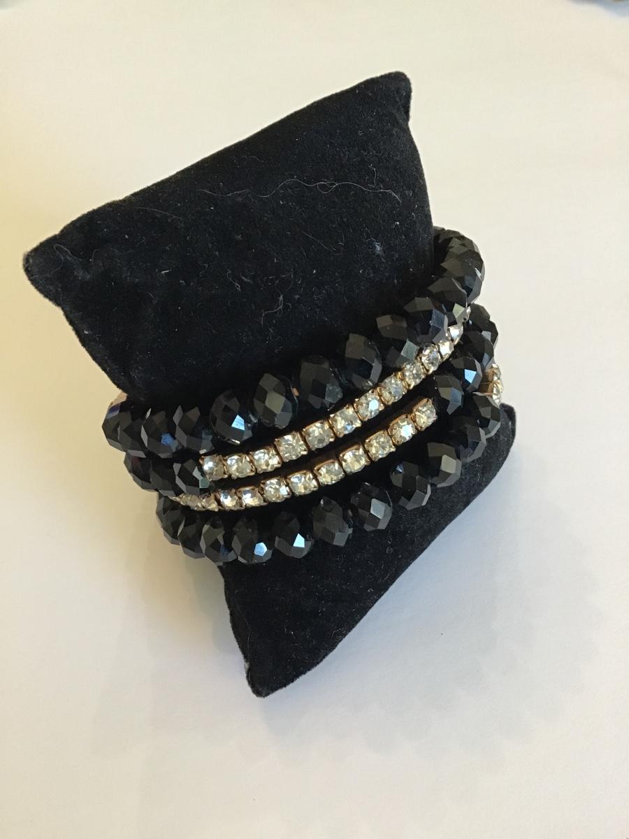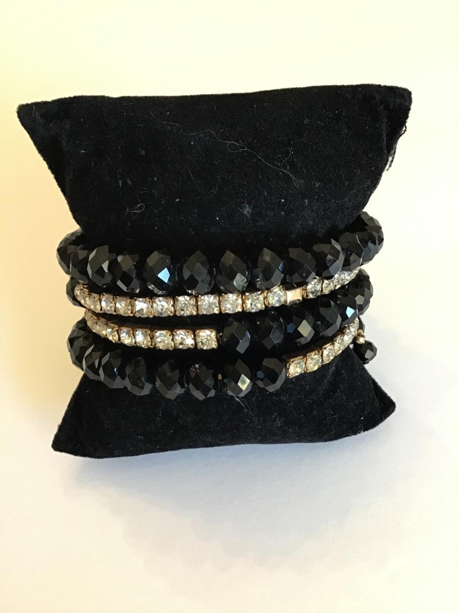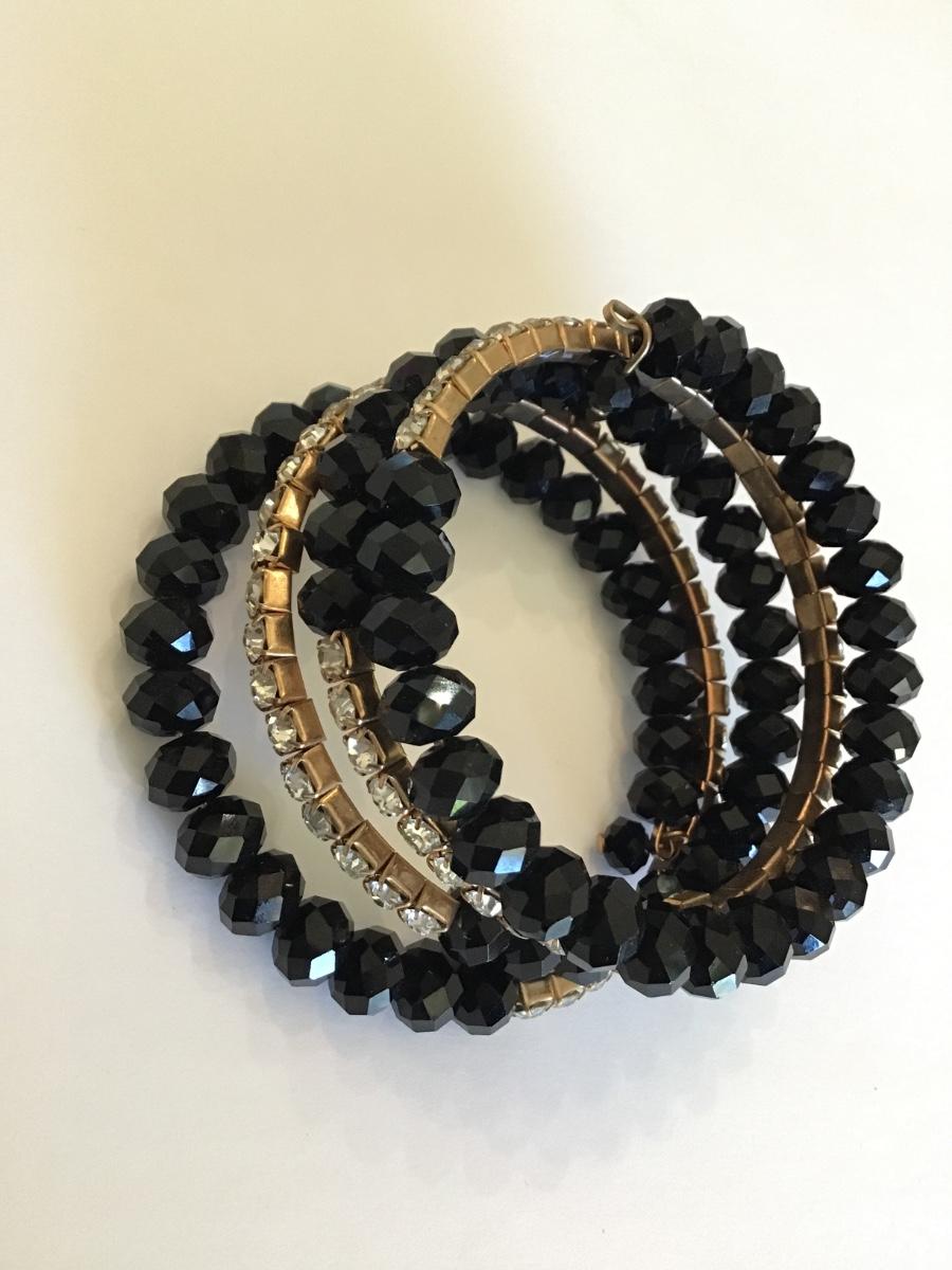Vintage wrap bracelet with black faceted glass beads and Rhinestones