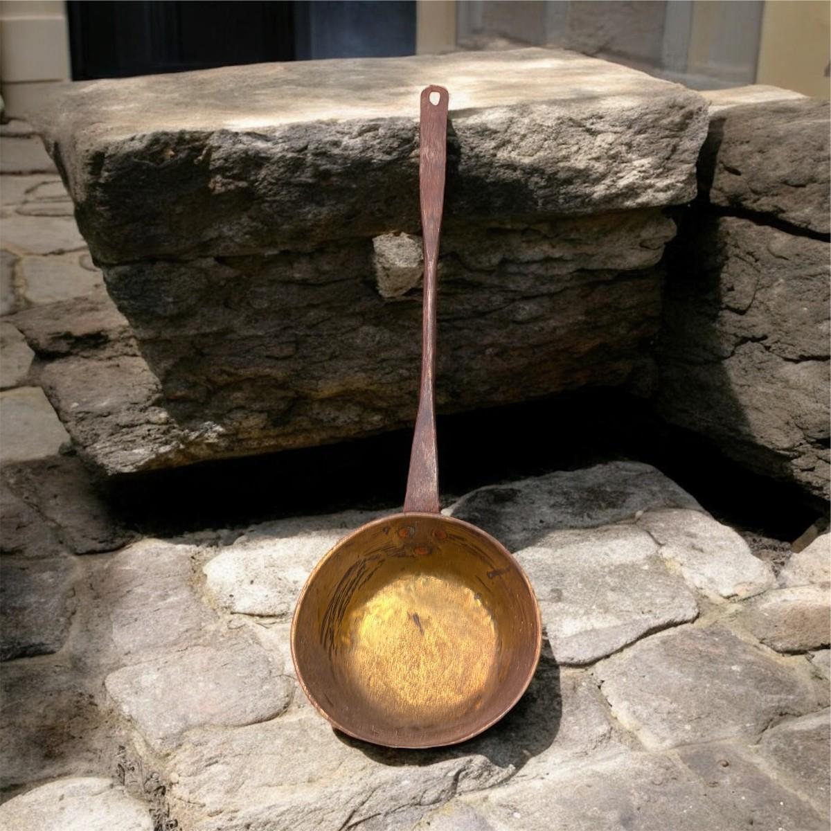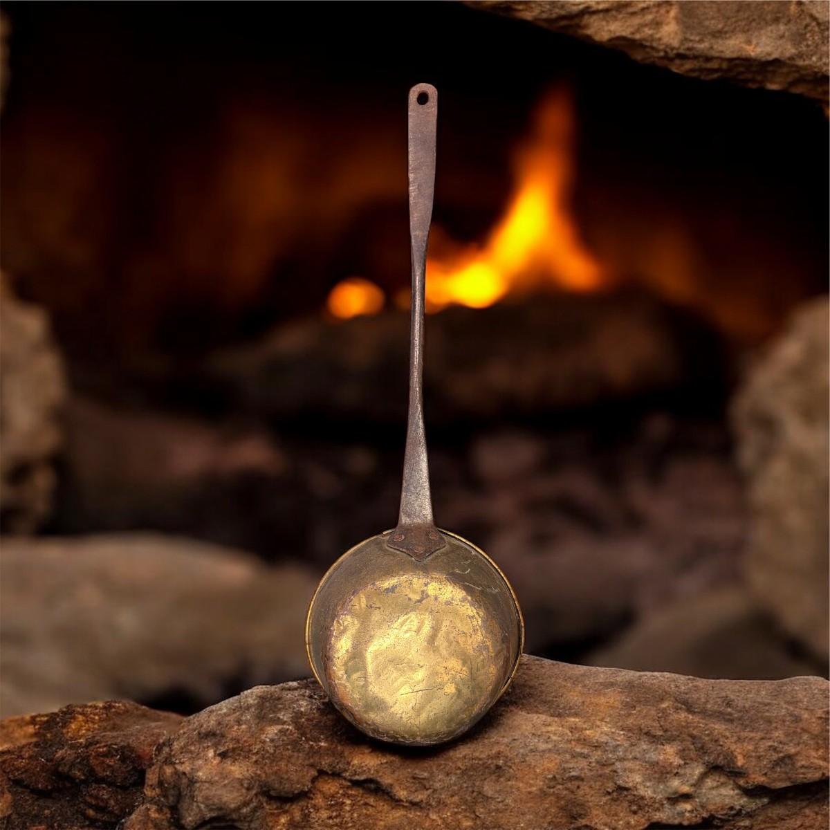 Vintage Wrought Iron and Brass Long Handle Ladle Approximately 20" Long x 6" Wide
