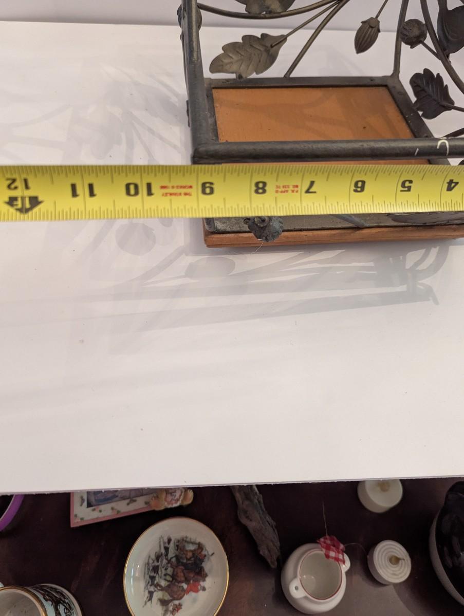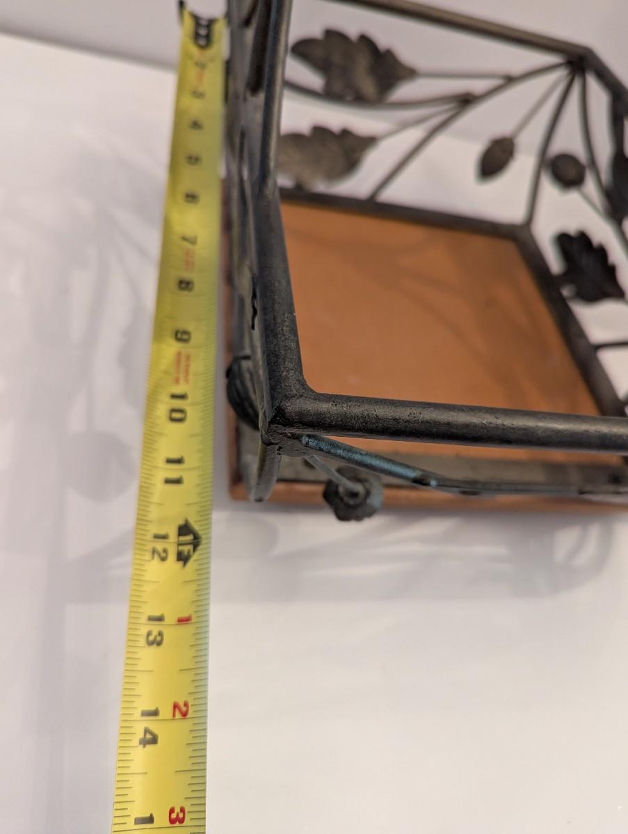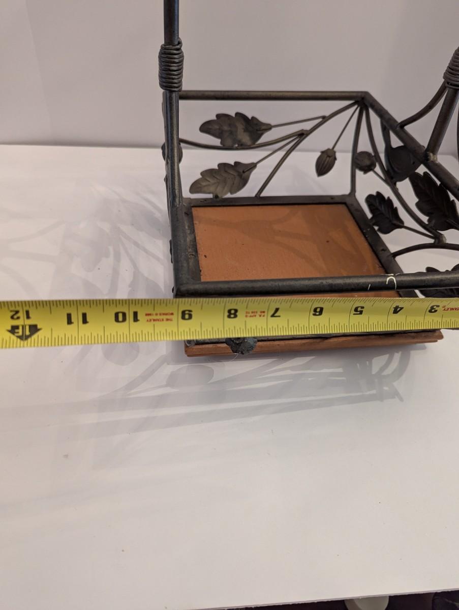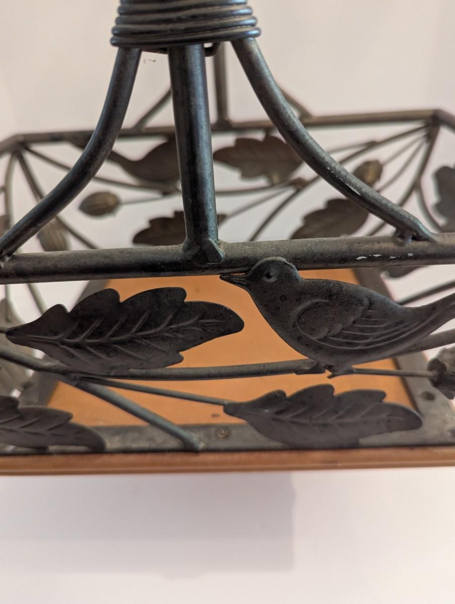 Vintage Wrought Iron Basket Flowers Fruit Garden Birds Leaves Handle Wooden Bottom