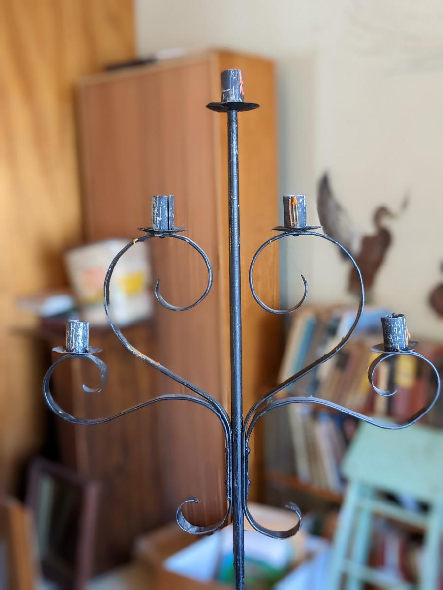 Vintage Wrought Iron Candlestick Floor Stand