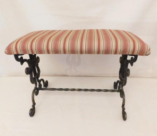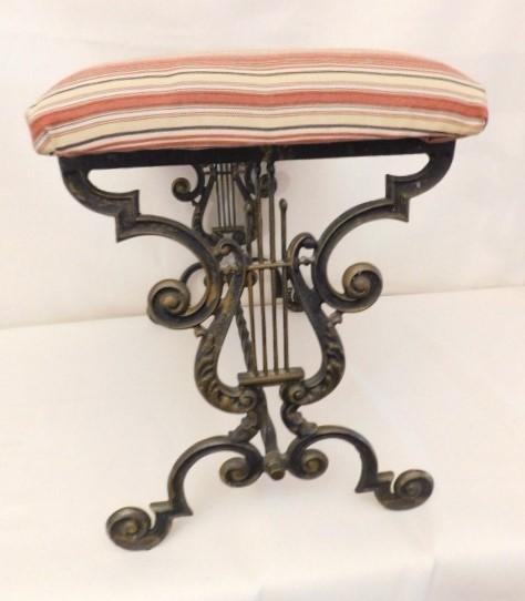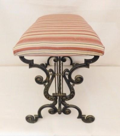 Vintage Wrought Iron Harp Frame Vanity Bench 24"