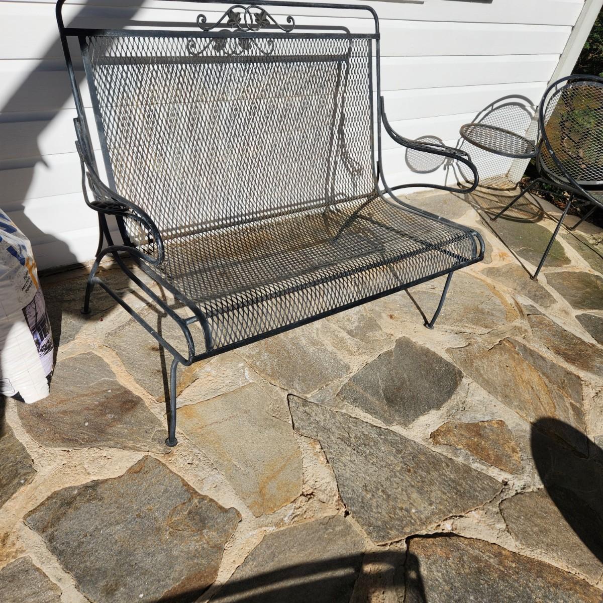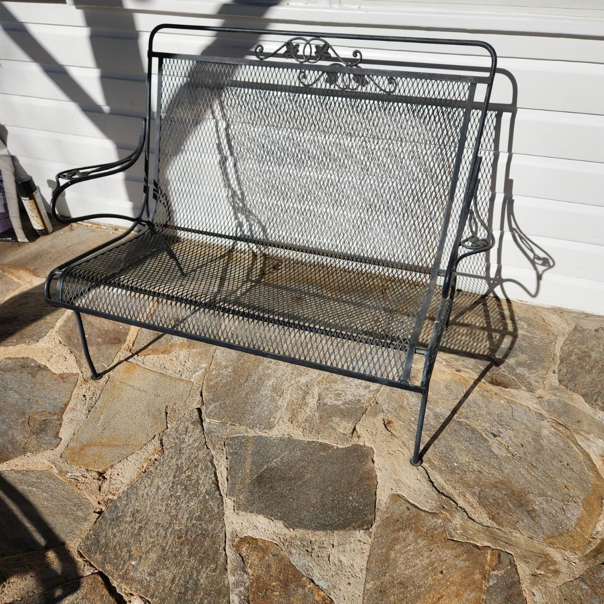 Vintage Wrought Iron Mesh Outdoor Garden Patio Settee 46x29x 34H