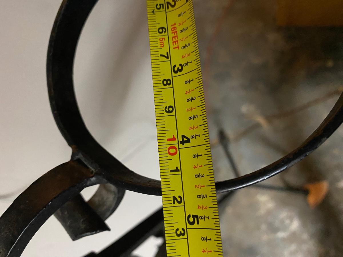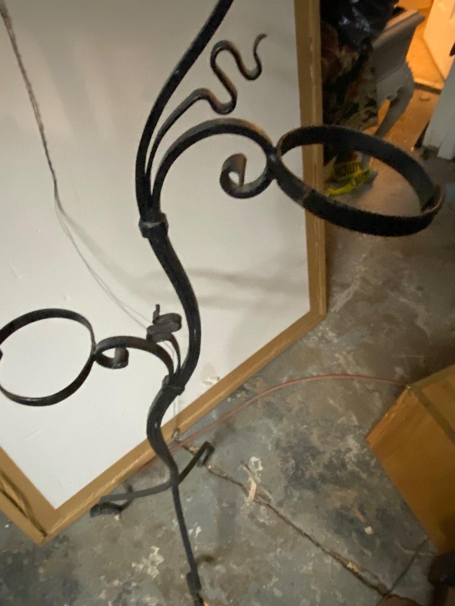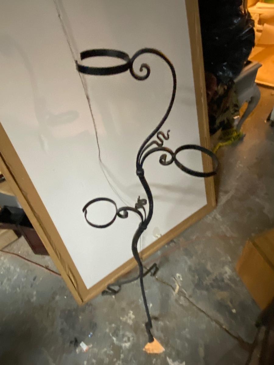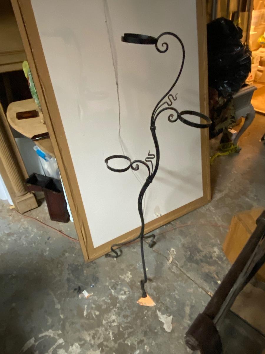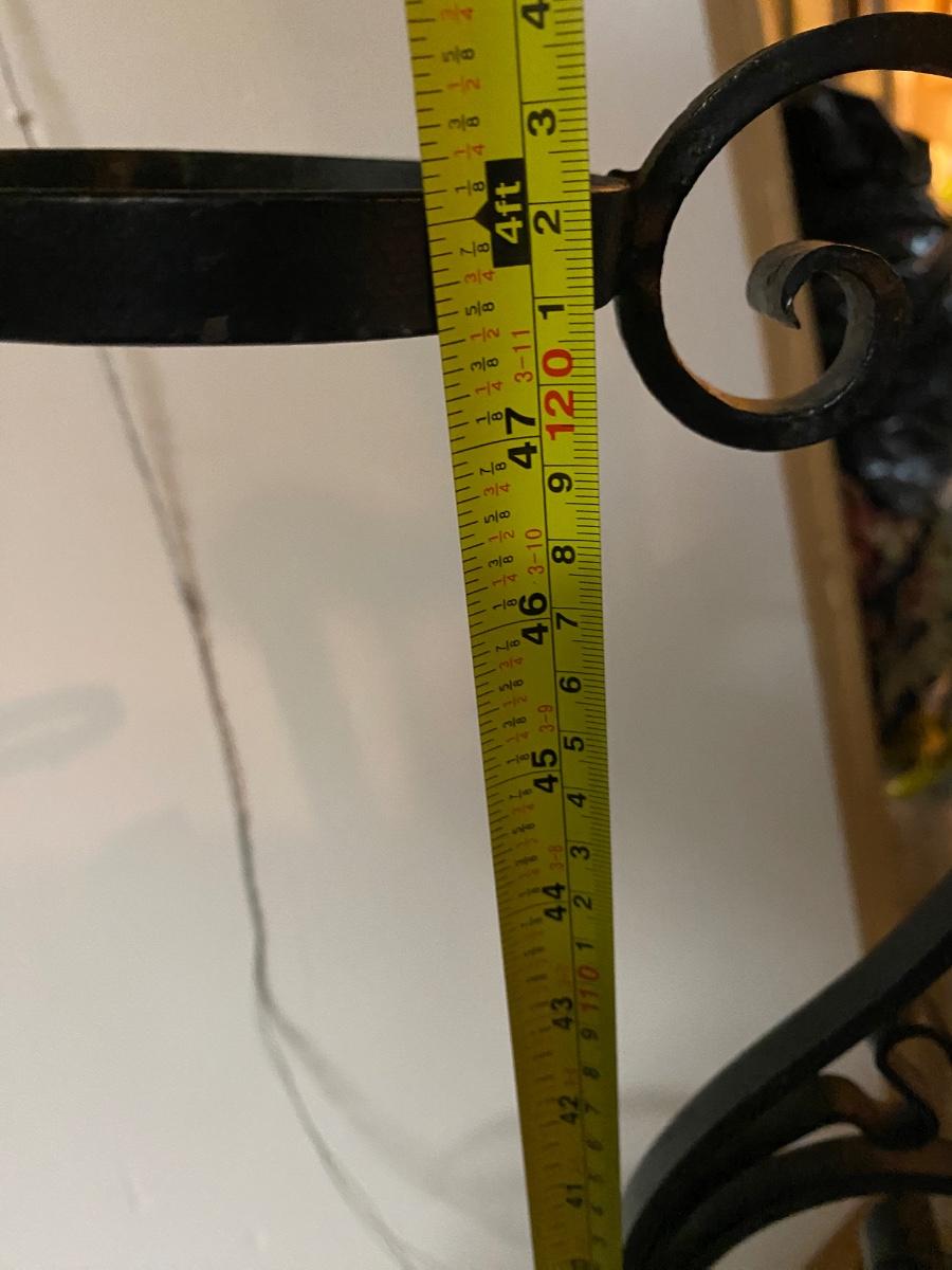 Vintage 48" wrought iron plant stand for 3 pots. Pot holders could be adjusted with a little effort