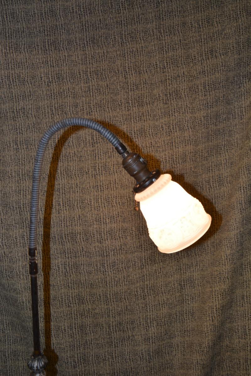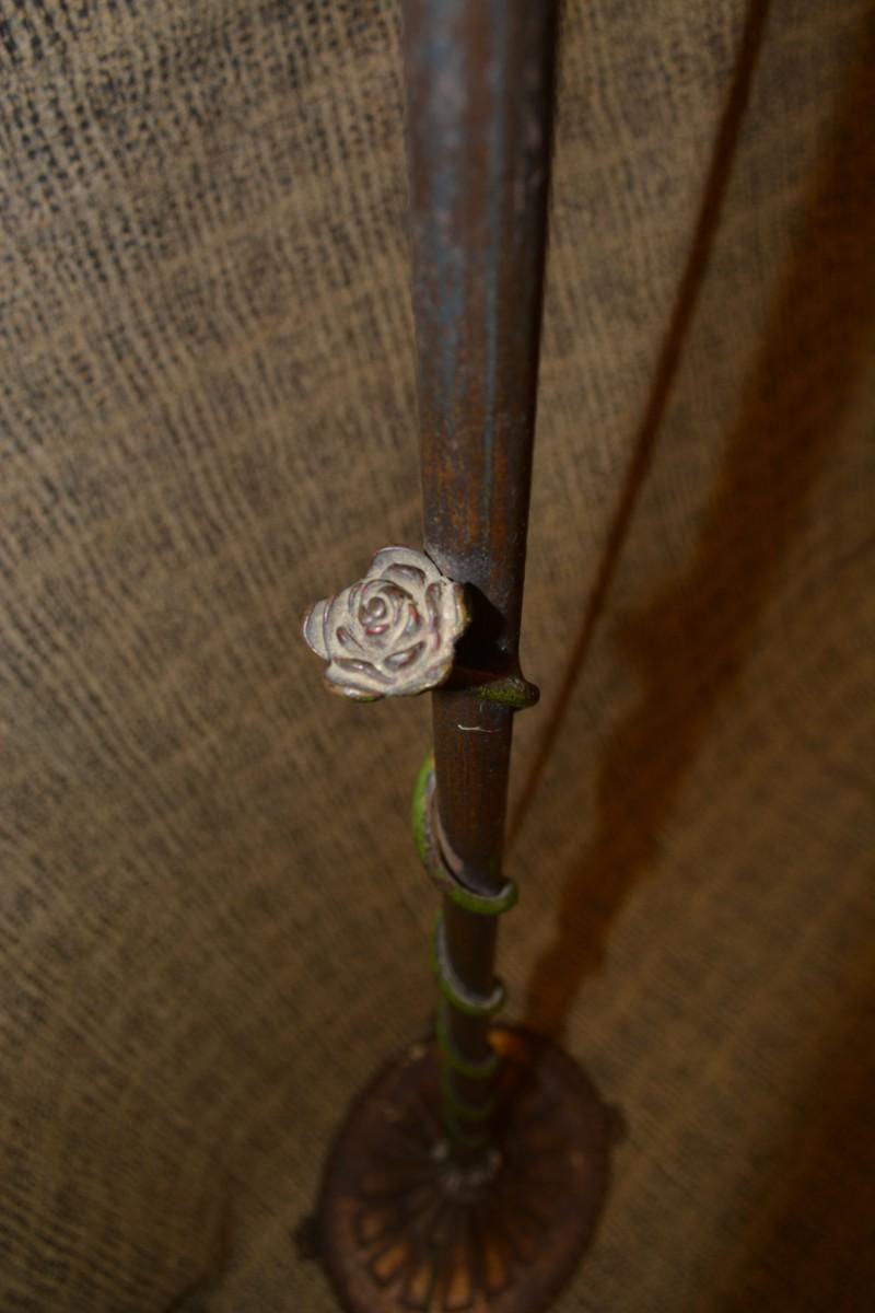 Vintage Wrought Iron Rose Stem Goose Neck Lamp 74"