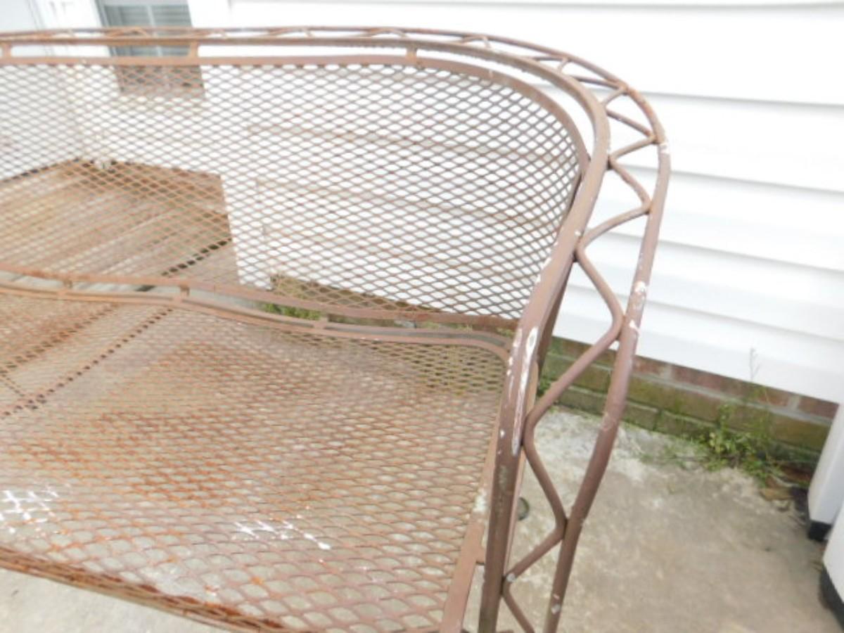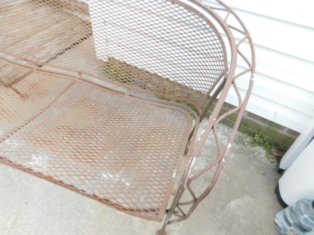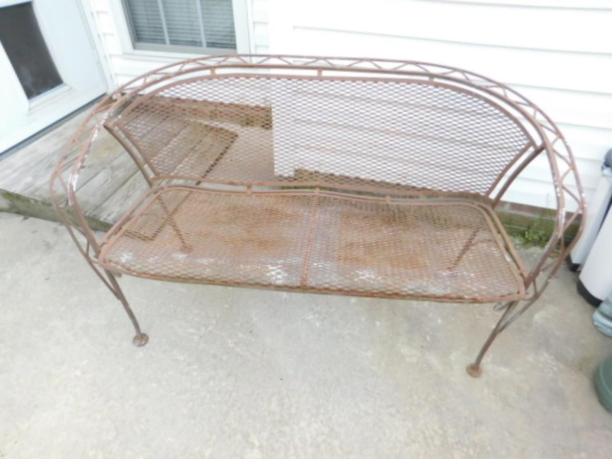 Vintage Wrought Metal and Mesh Outdoor Patio Bench