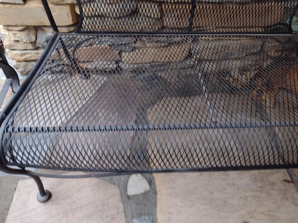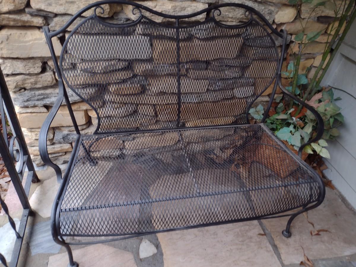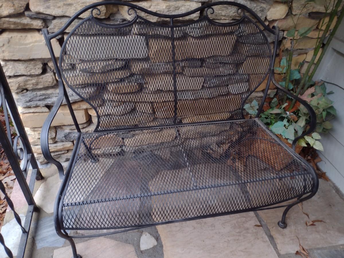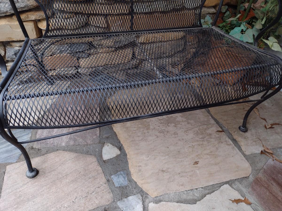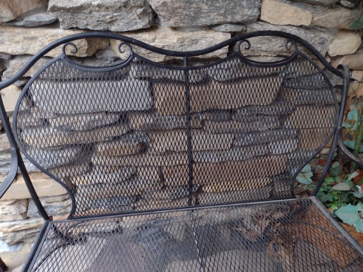 Vintage Wrought Metal Frame Bench with Mesh Seat and Back