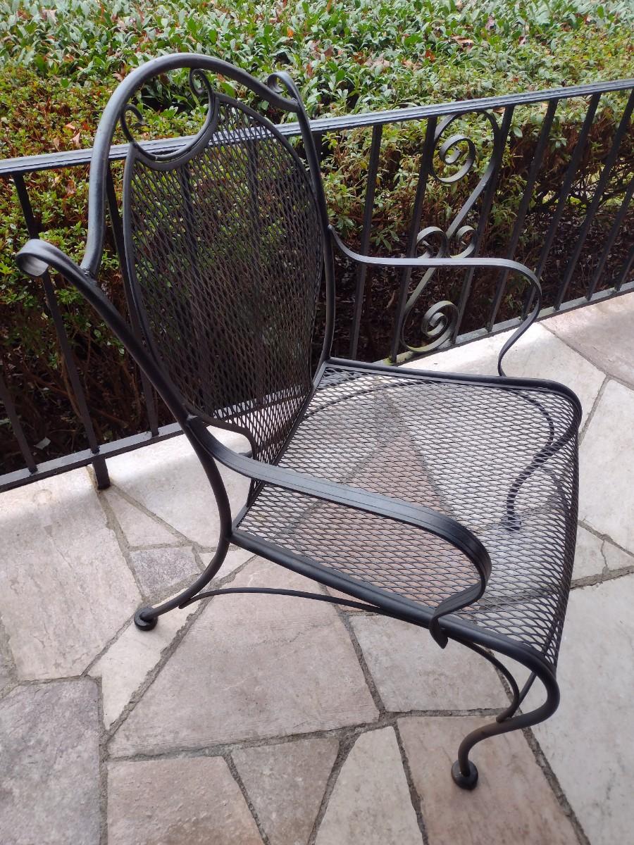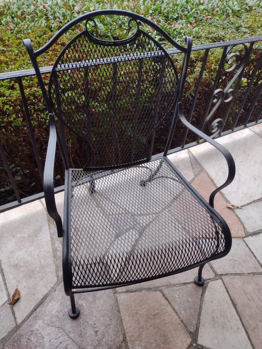 Vintage Wrought Metal Frame Chair with Mesh Seat and Back