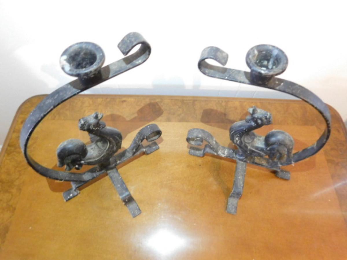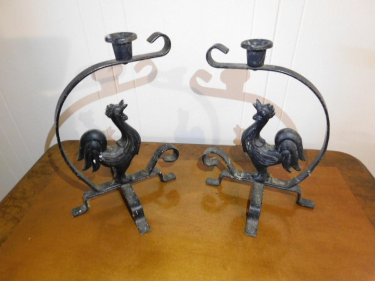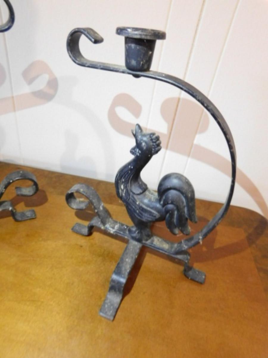 Vintage Wrought Metal Rooster Theme Candle Holders