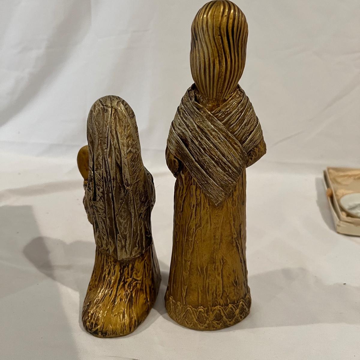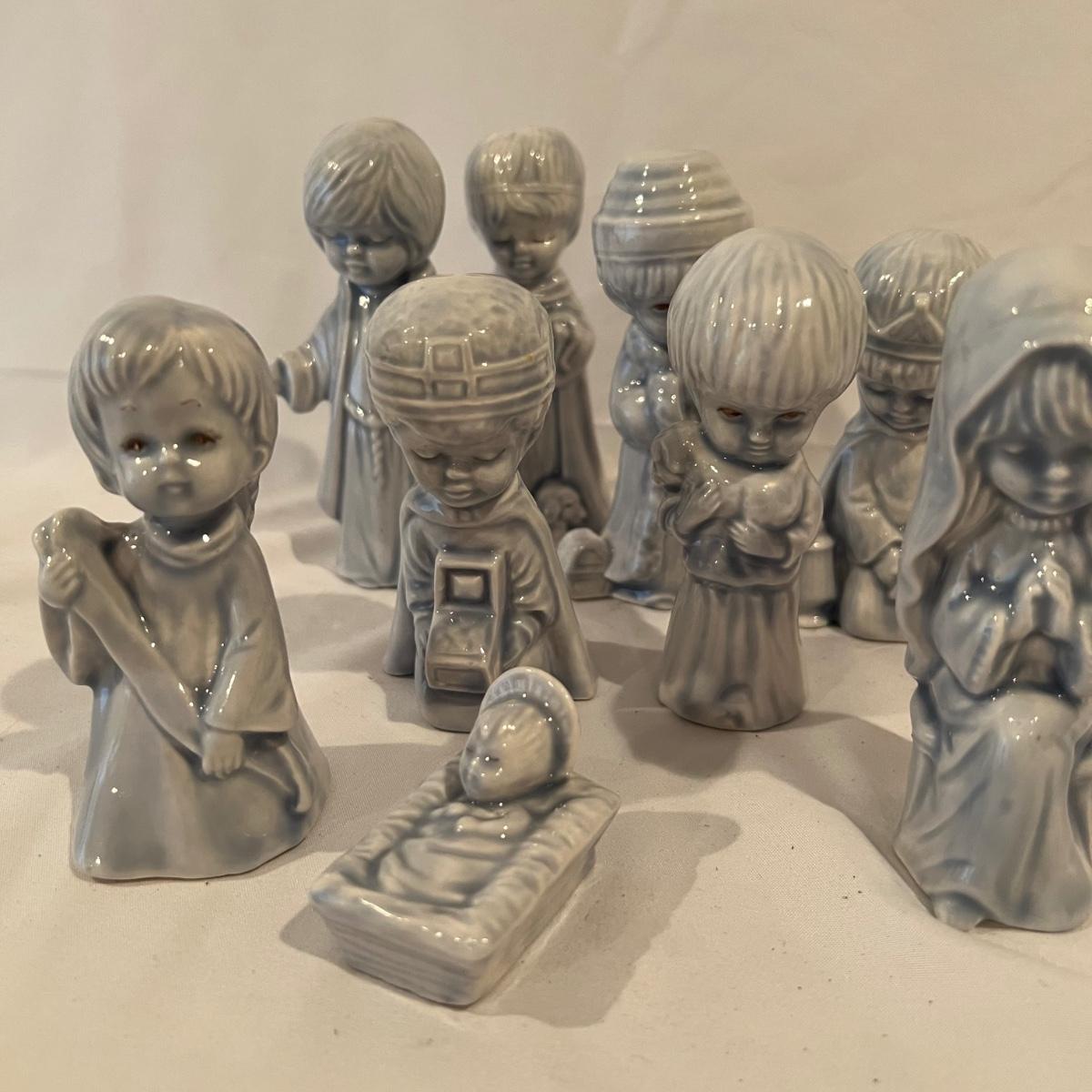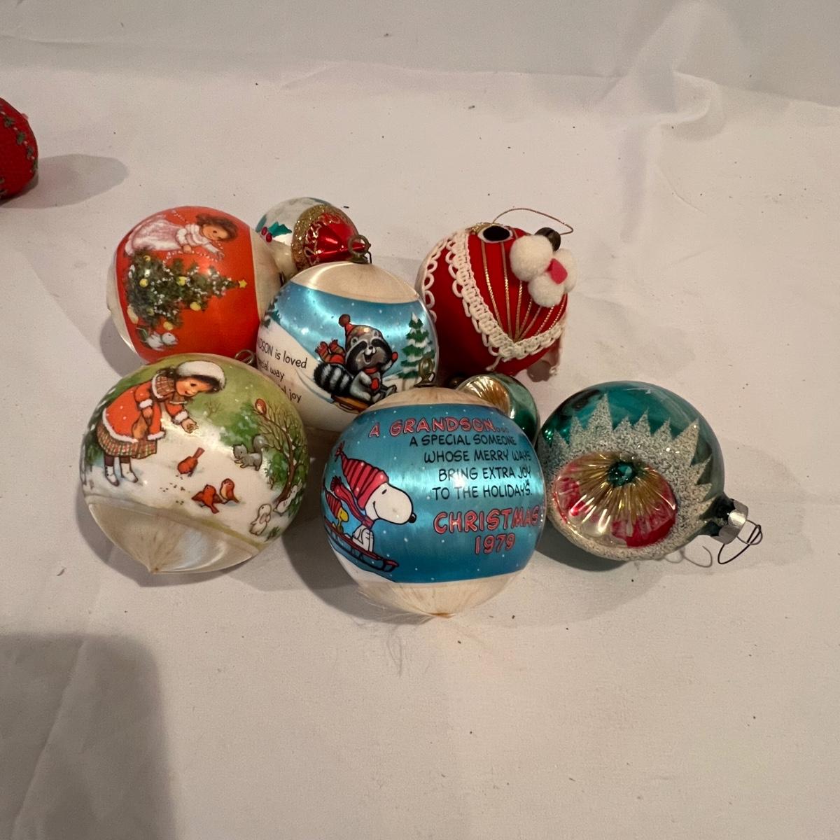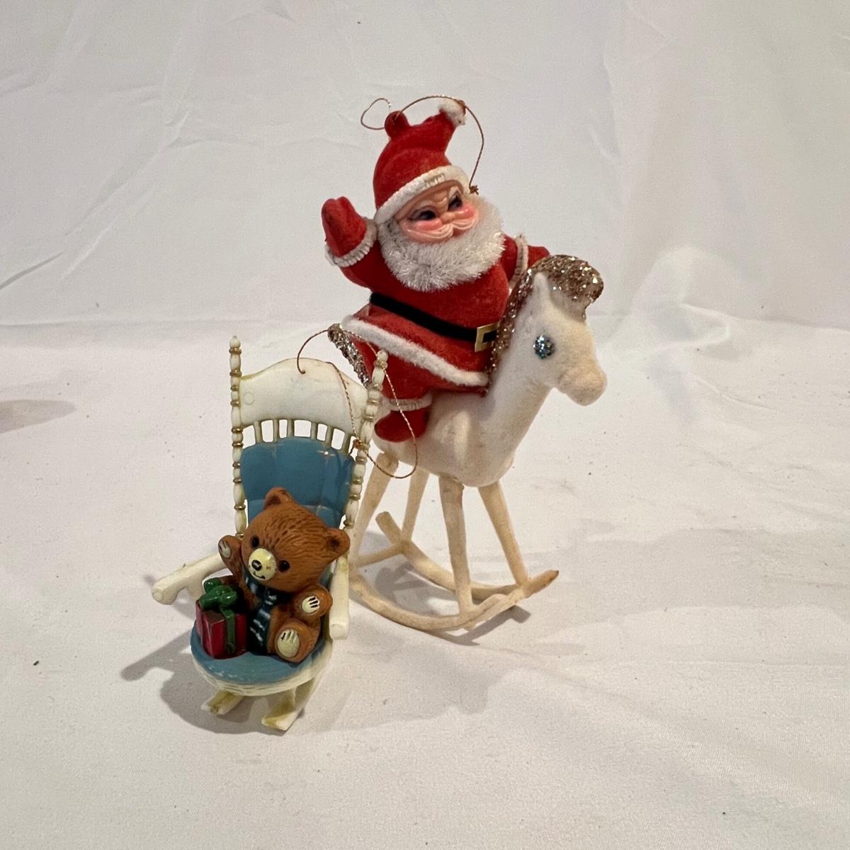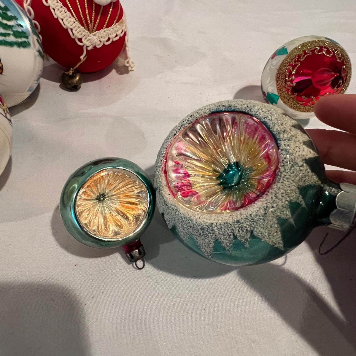 Some fabulous vintage items. Over 50 ornaments - some newer and some vintage. The Mary and Joseph figurines are Schmid Bros. Joseph measures 3”D x 10”H. The ceramic nativity includes 14 pieces; see images as some have different makers marks. The 10 Gurley candles have not been used. Note that Santa does have a chip and he and the tree do not have any identifying stickers.