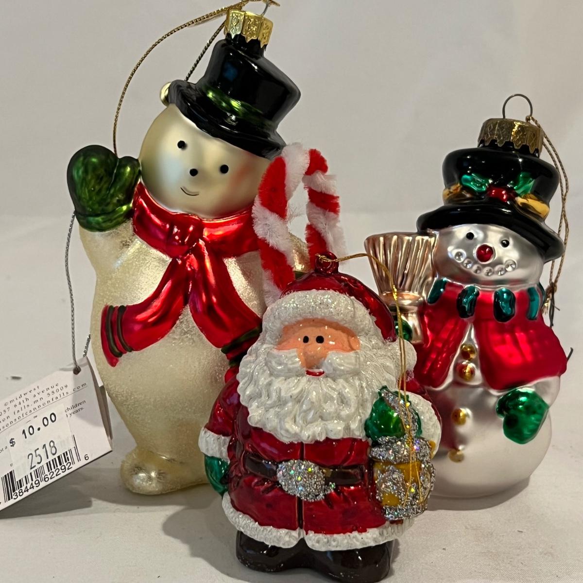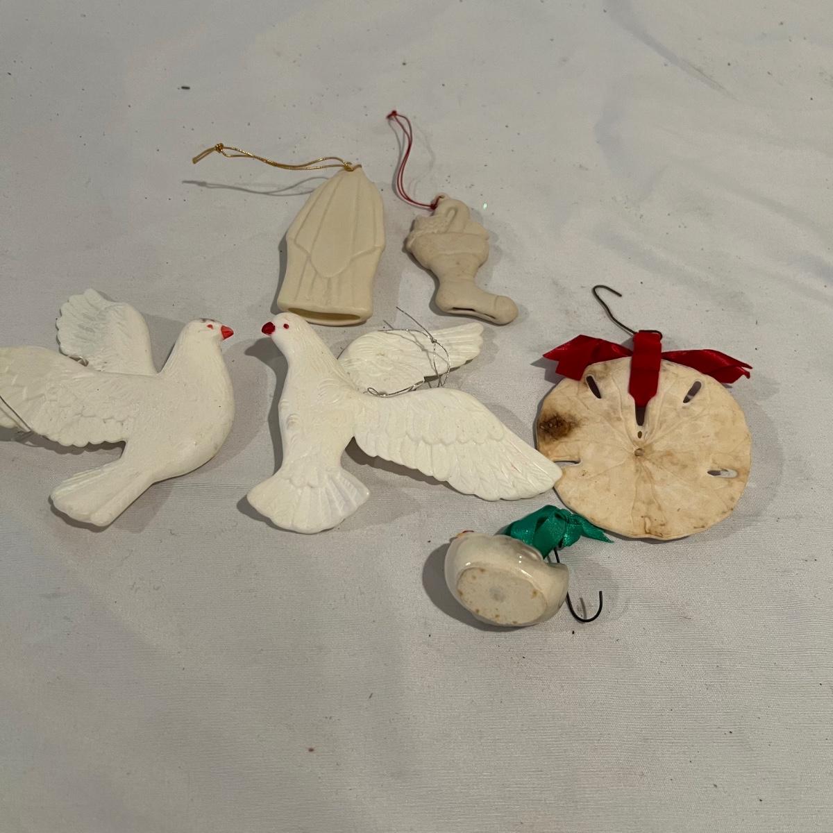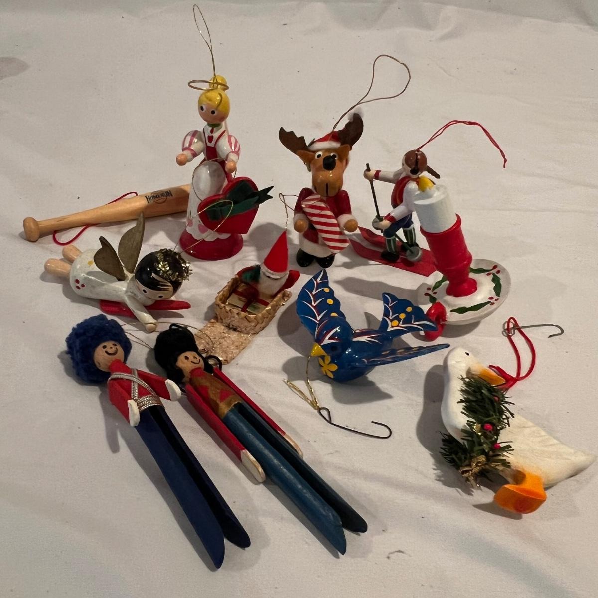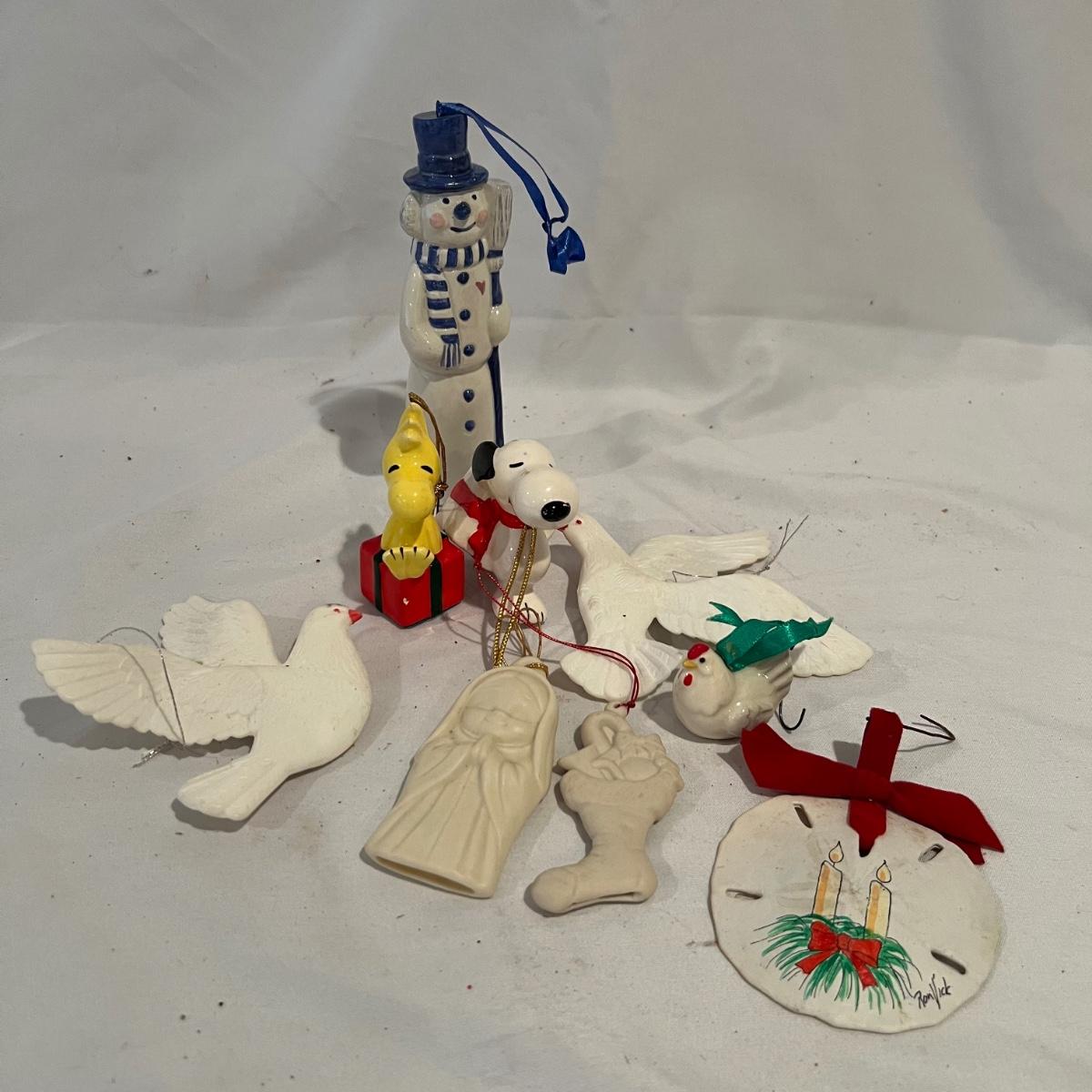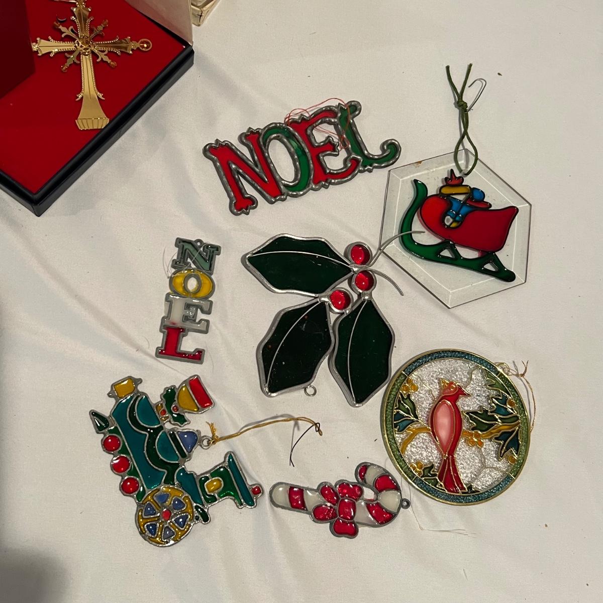 Some fabulous vintage items. Over 50 ornaments - some newer and some vintage. The Mary and Joseph figurines are Schmid Bros. Joseph measures 3”D x 10”H. The ceramic nativity includes 14 pieces; see images as some have different makers marks. The 10 Gurley candles have not been used. Note that Santa does have a chip and he and the tree do not have any identifying stickers.