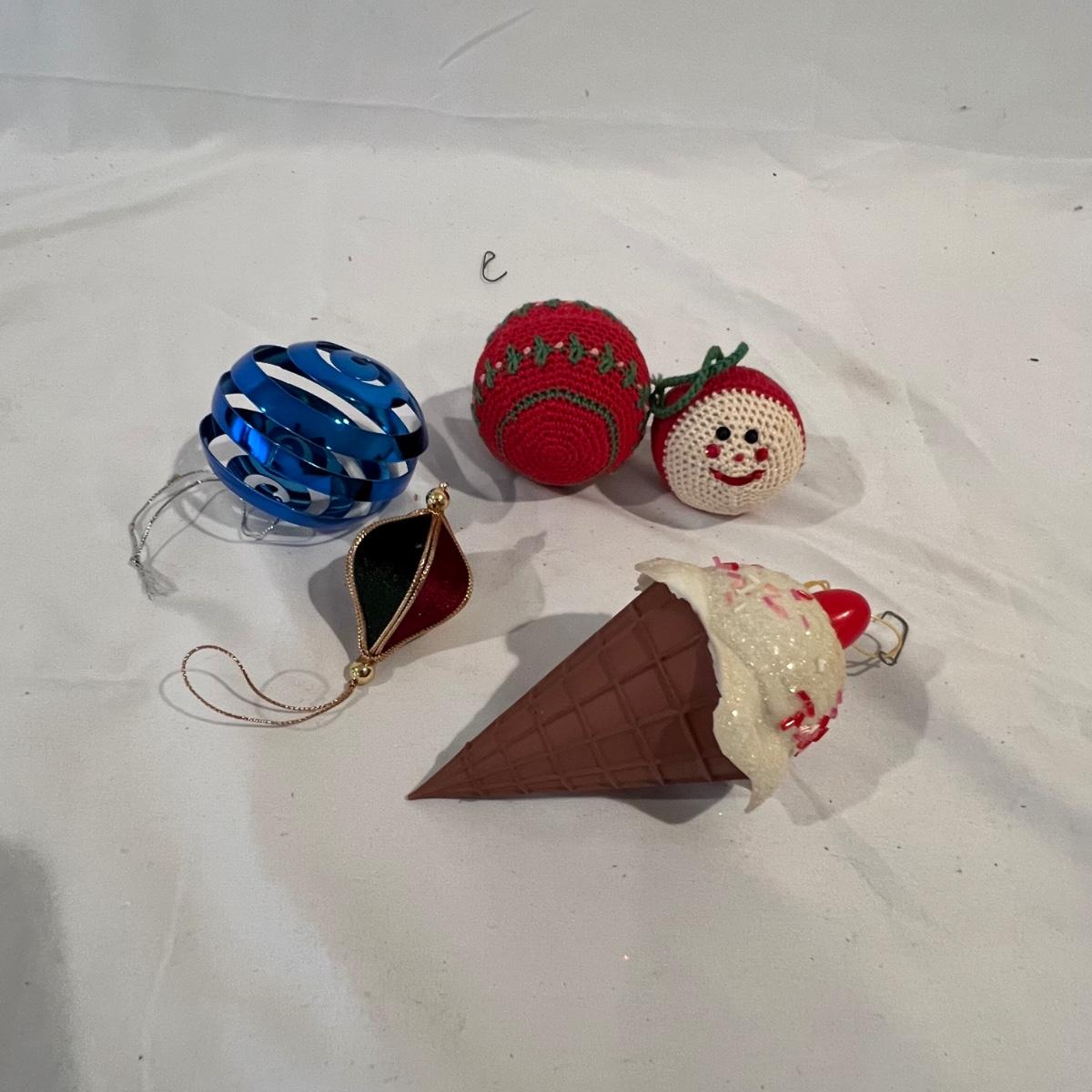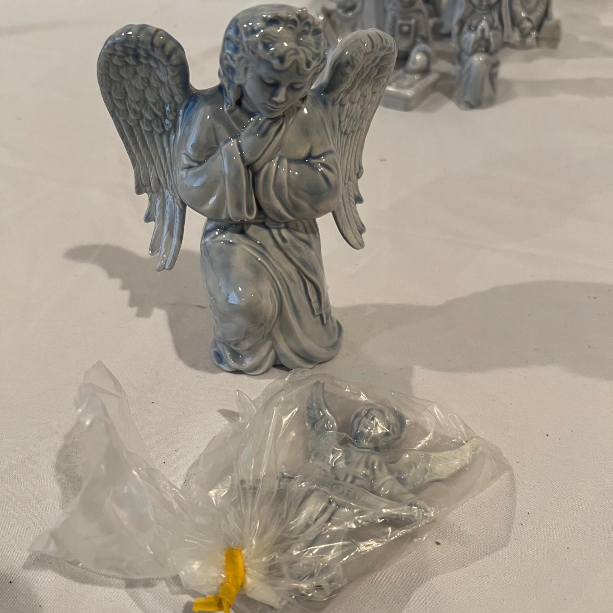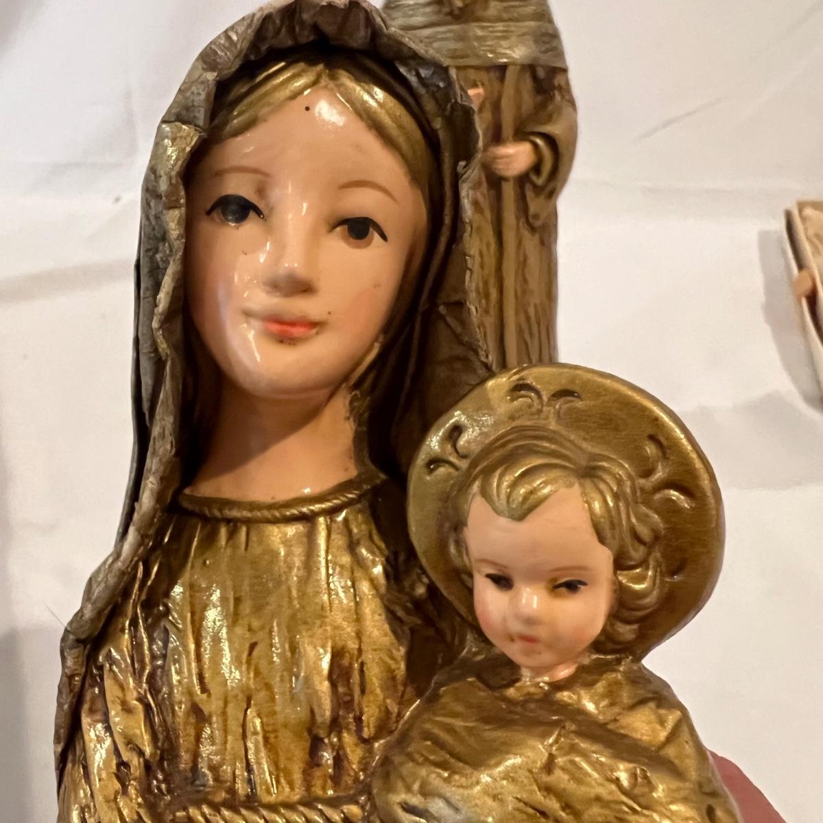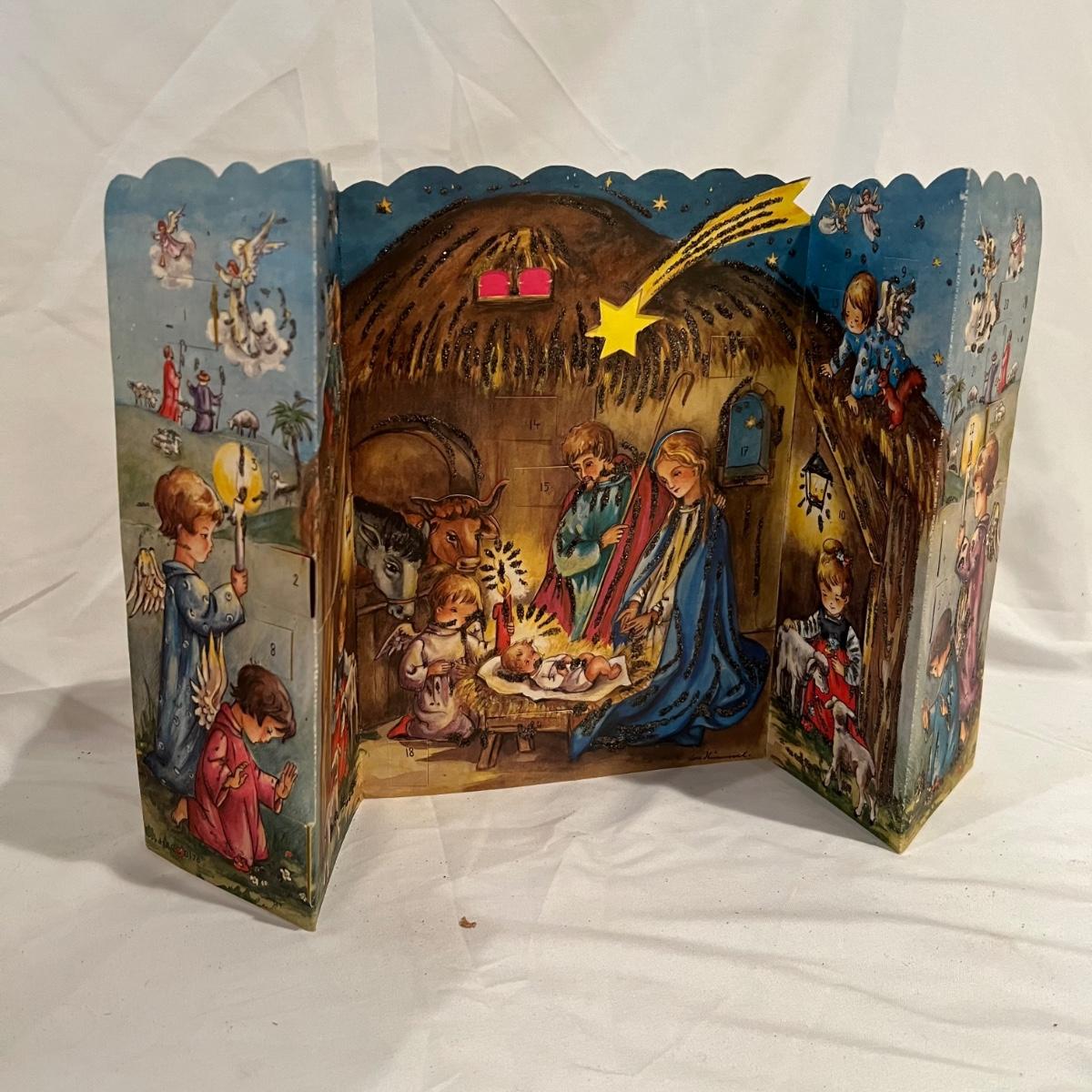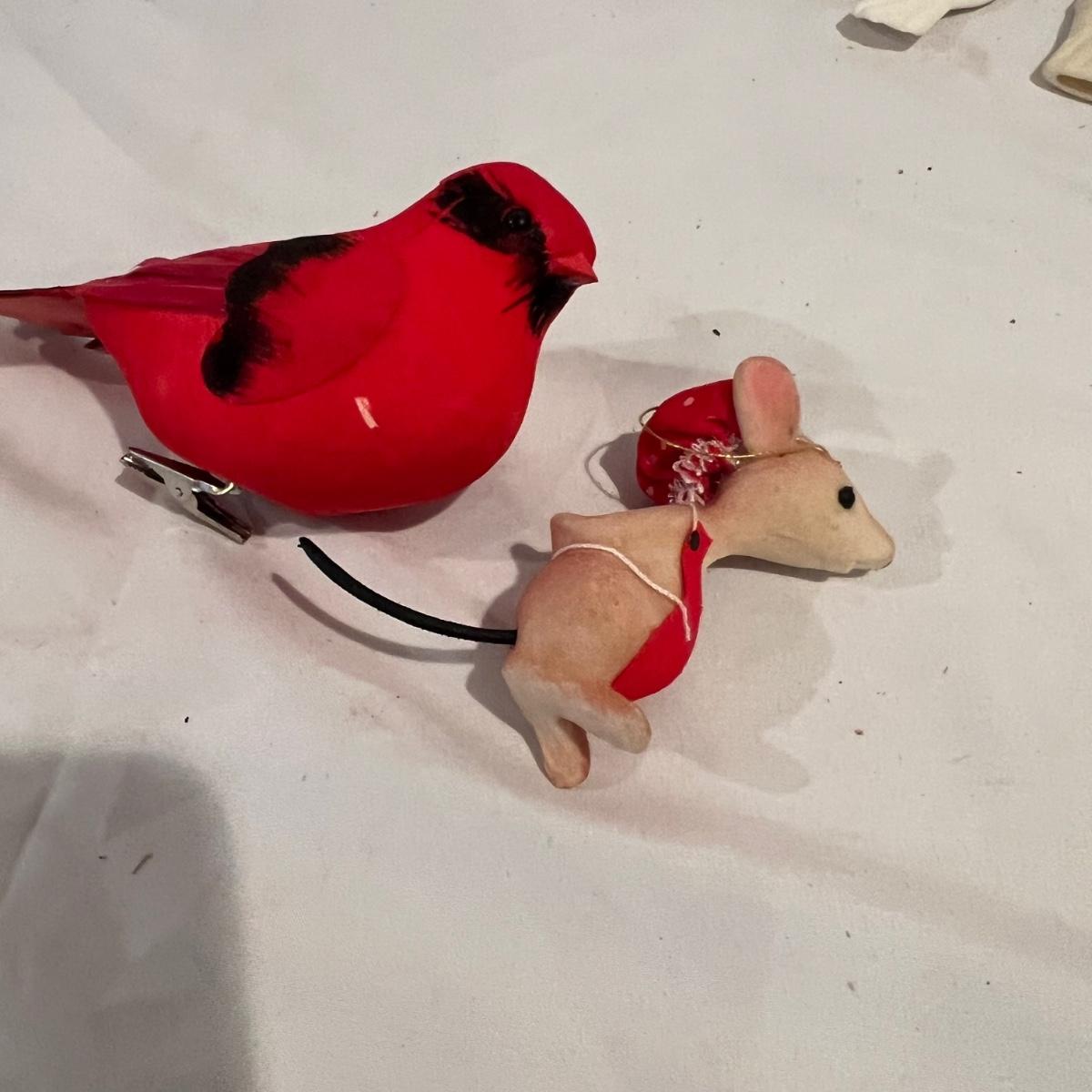 Some fabulous vintage items. Over 50 ornaments - some newer and some vintage. The Mary and Joseph figurines are Schmid Bros. Joseph measures 3”D x 10”H. The ceramic nativity includes 14 pieces; see images as some have different makers marks. The 10 Gurley candles have not been used. Note that Santa does have a chip and he and the tree do not have any identifying stickers.